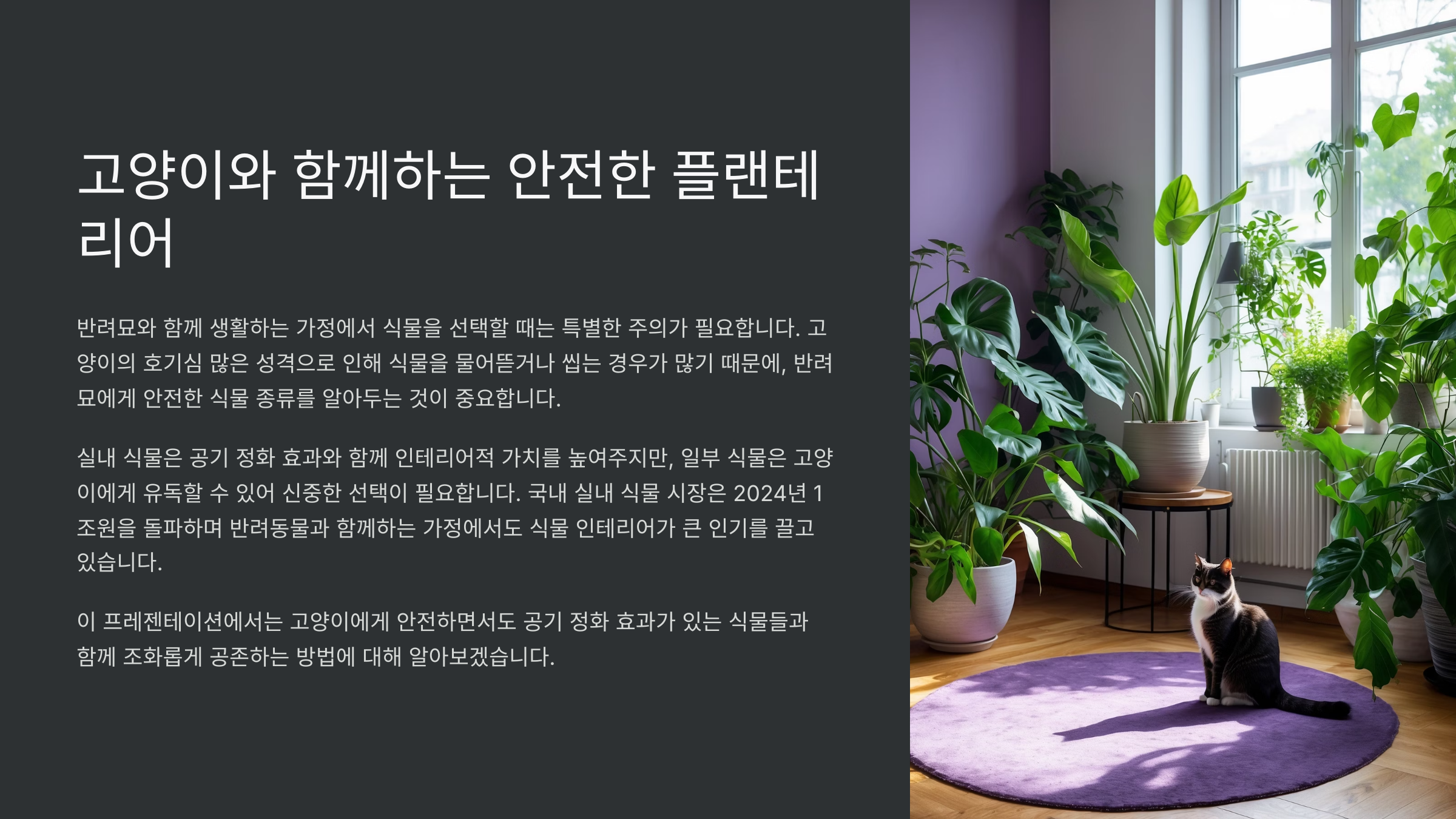 공기도 정화하고 고양이도 안전하게! 다음은 '고양이 있는 집에 적합한 화분 식물'을 소개해볼게요! 🐱🪴