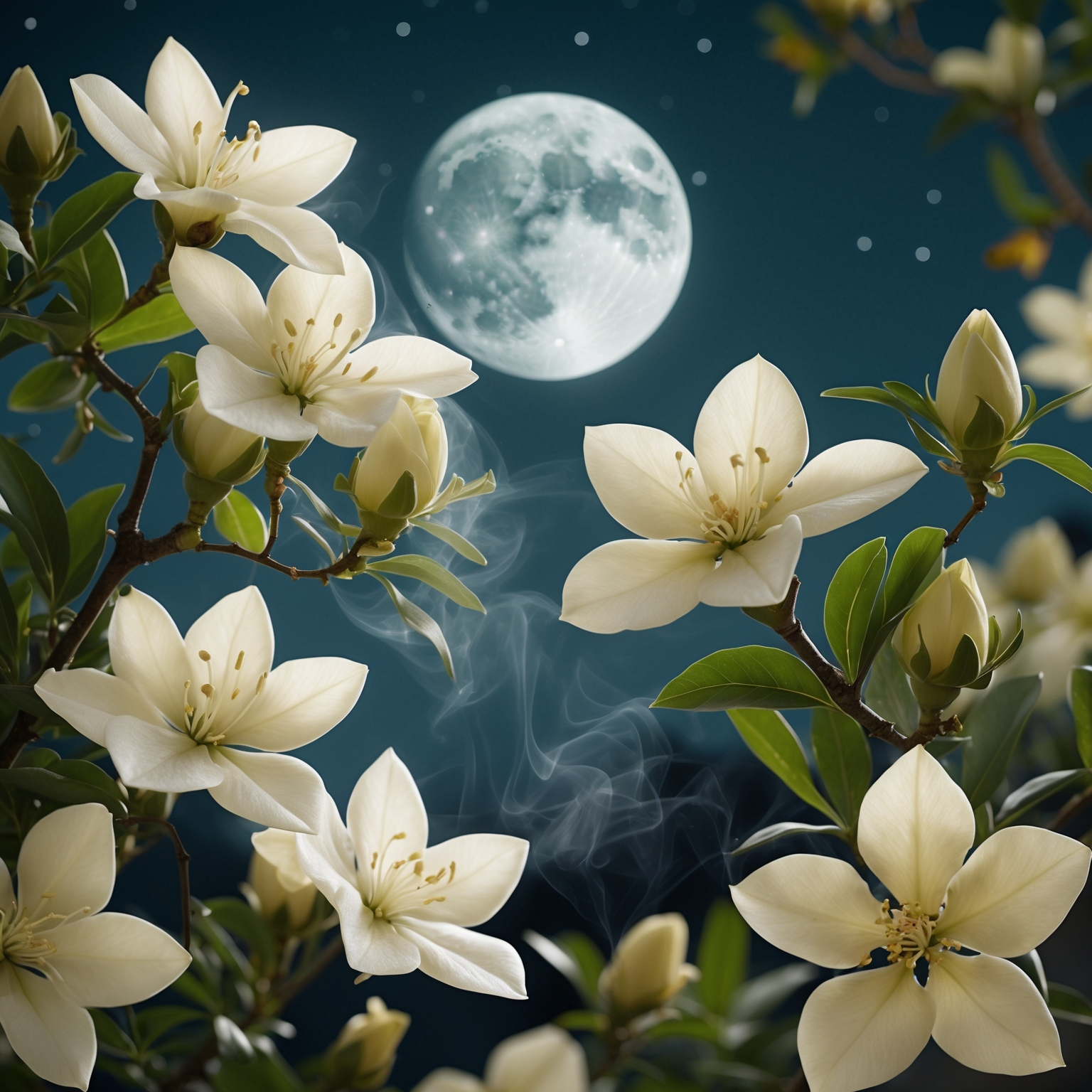 ‘문플라워(Moonflower)’는 이름부터 밤과 관련이 있는 꽃이에요. 해가 지고 나서야 꽃이 피고 향을 내기 시작하는 이 신비로운 꽃은 하얀 꽃잎과 함께 은은하면서도 신선한 향을 퍼뜨려요. 마치 밤하늘의 달처럼 조용히 빛나는 느낌이에요.
