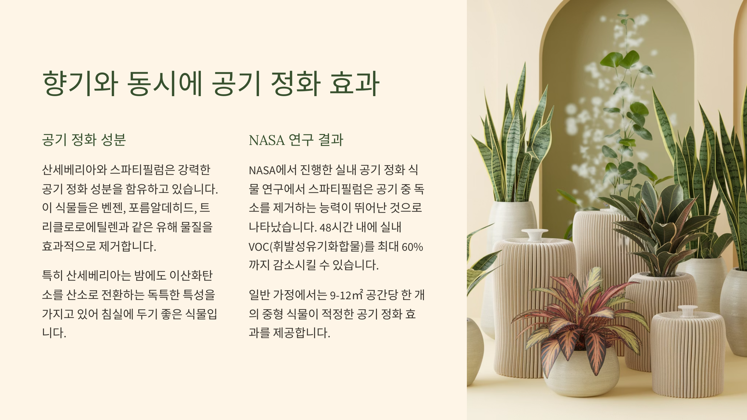 집 안에 향기만 가득한 게 아니라, 공기까지 정화해주는 향기 화초라면 그야말로 일석이조죠! 실내 공기질이 점점 중요해지는 요즘, 향도 좋고 공기까지 깨끗하게 만들어주는 식물들은 정말 인기가 많아요.