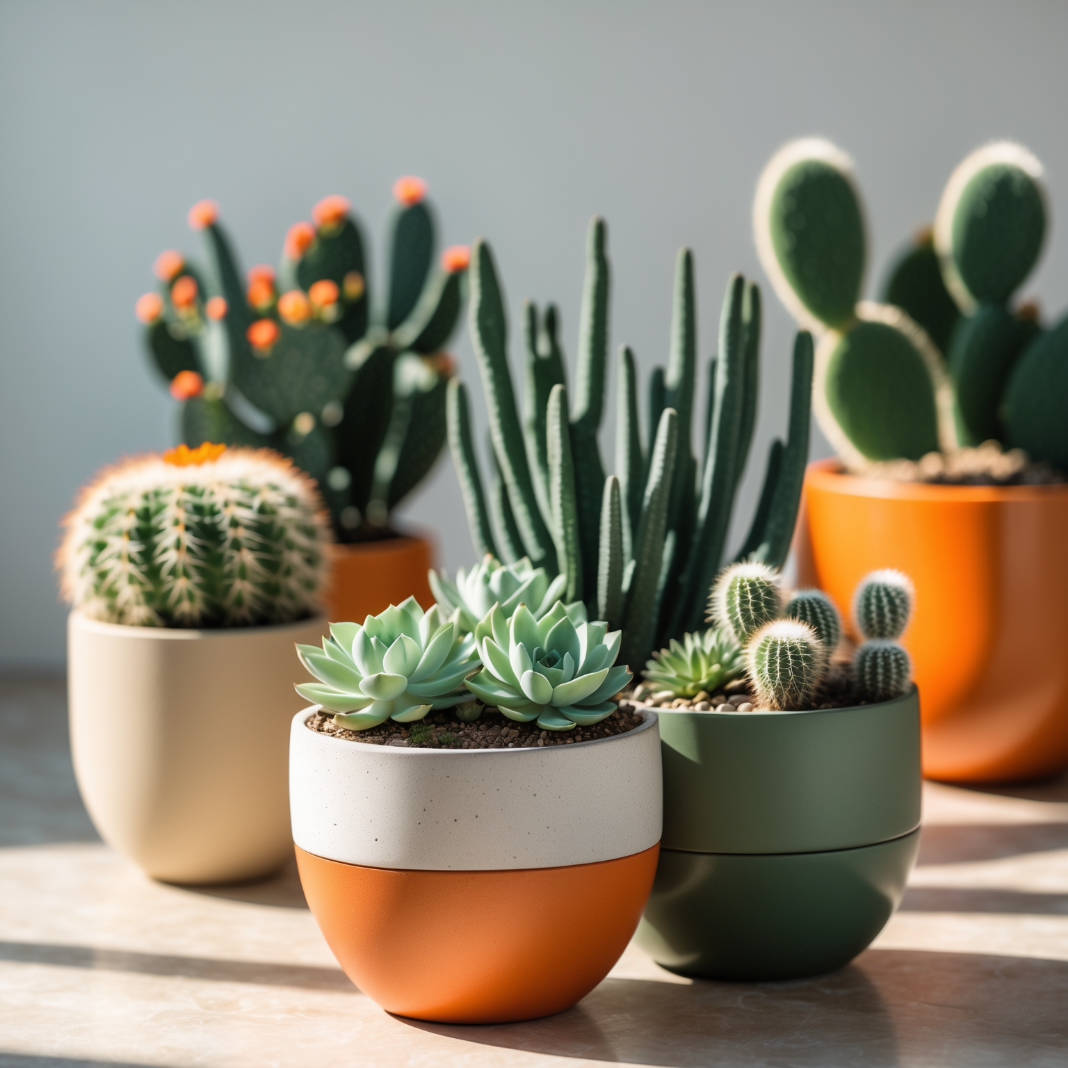 선인장은 습한 화장실보다는 건조한 거실, 책상, 베란다 등 통풍이 잘 되는 공간이 좋아요. 그리고 이왕이면 토분 화분에 심는 걸 추천해요. 숨을 쉬는 느낌이 다르거든요. 😌