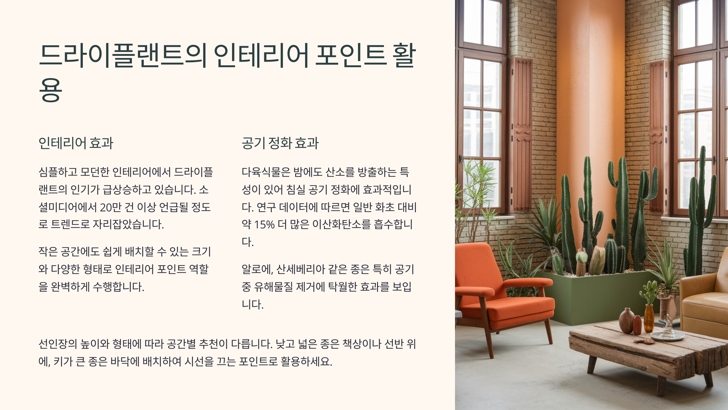 | 드라이플랜트 이름 | 분위기 | 활용 위치 |