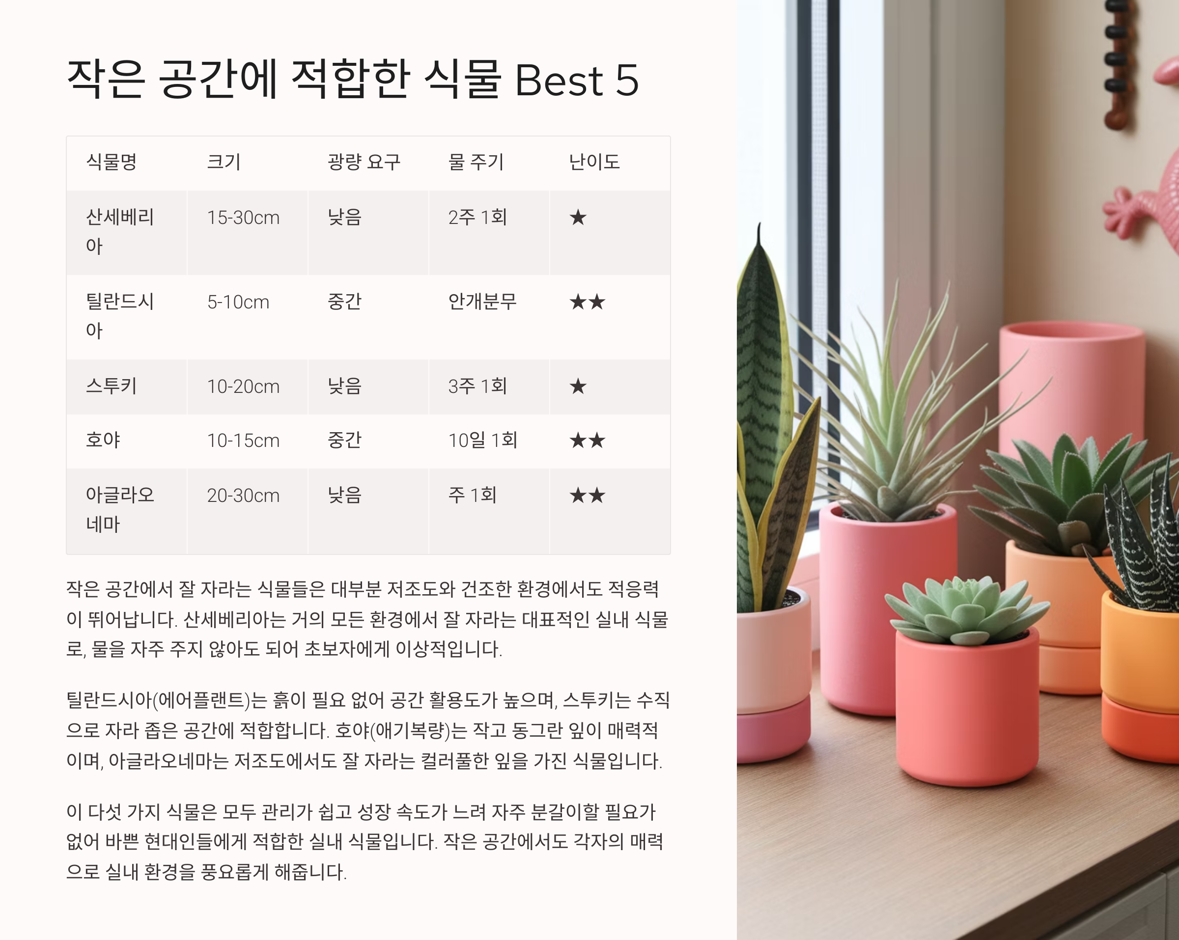 작은 공간에서 잘 크는 식물 🌿