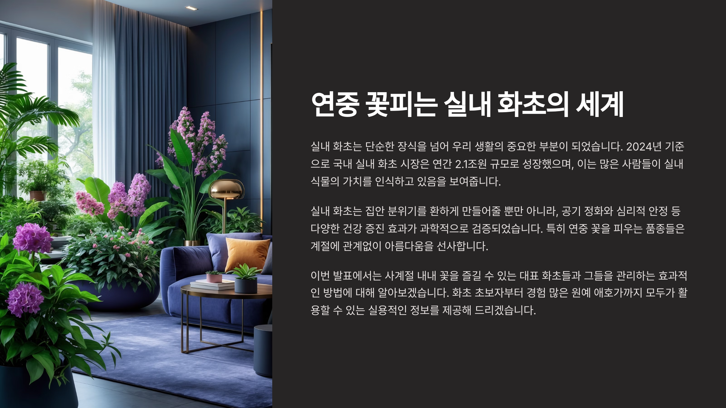 이제부터는 연중 꽃을 볼 수 있는 실내 식물 리스트부터, 계절별 추천 꽃, 오래 가는 품종과 재개화 방법까지 꼼꼼하게 소개해볼게요. 인테리어 효과까지 제대로 챙길 수 있어요! 🌿