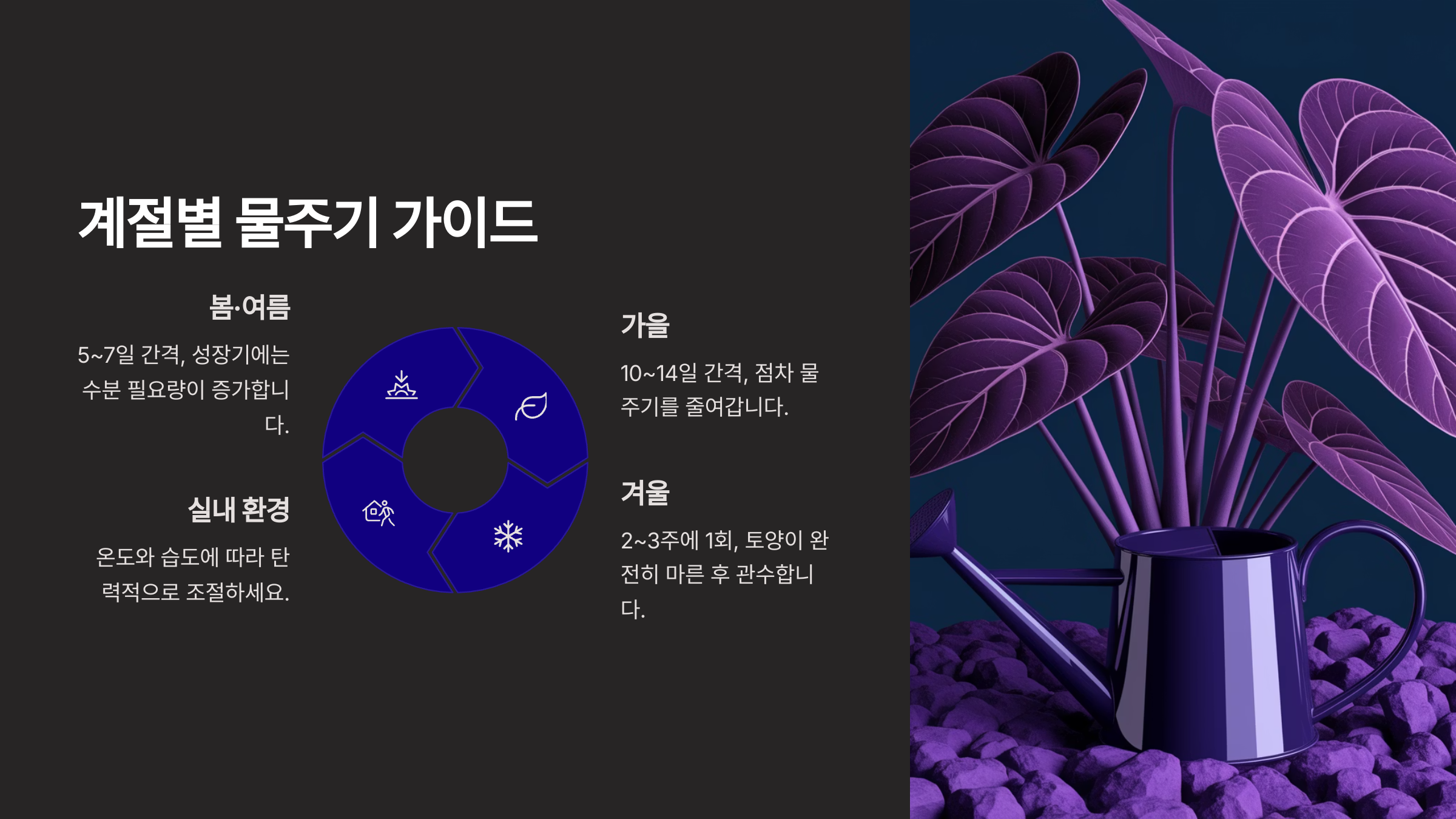 계절별 알로카시아 물주기 가이드 🌸❄️