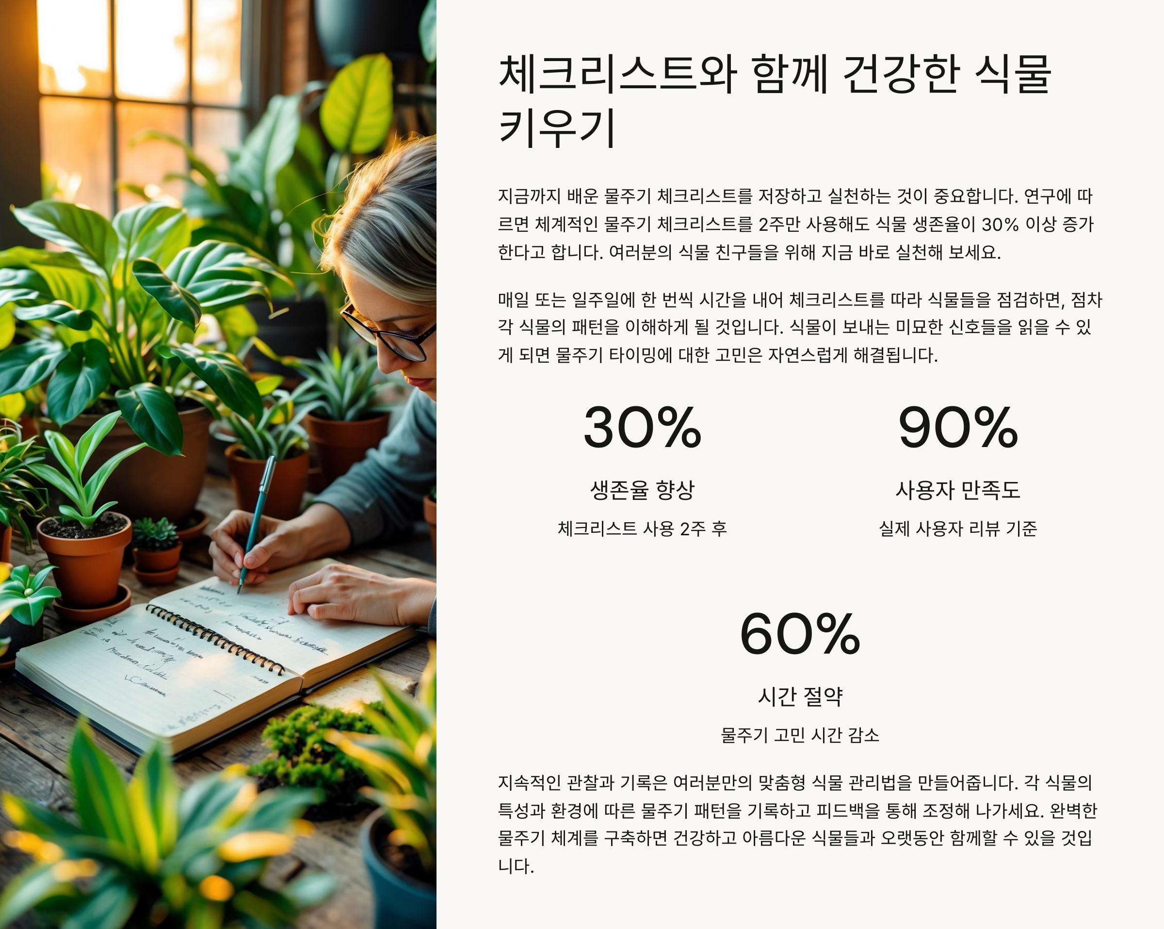 해결 방법 : 초보용~고수용 물주기 체크리스트 제공 📝