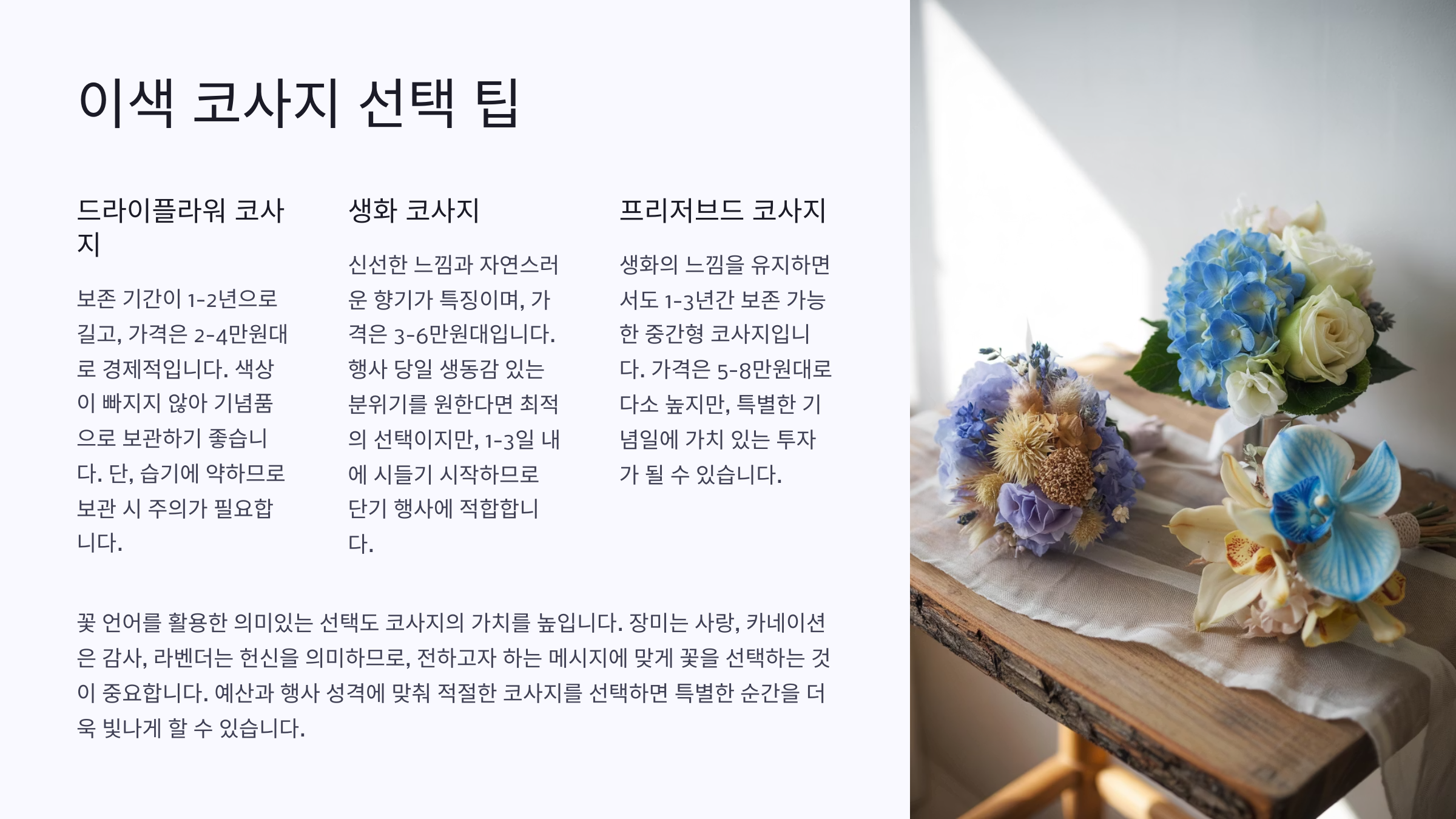 이색 코사지 선택 팁