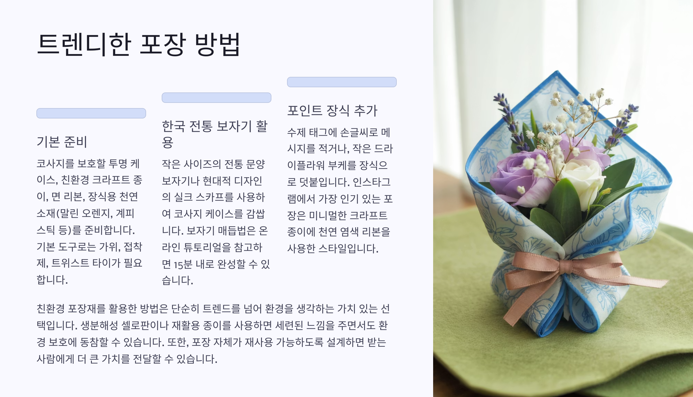 🎁 요즘 인기 있는 코사지 포장 스타일 ✨