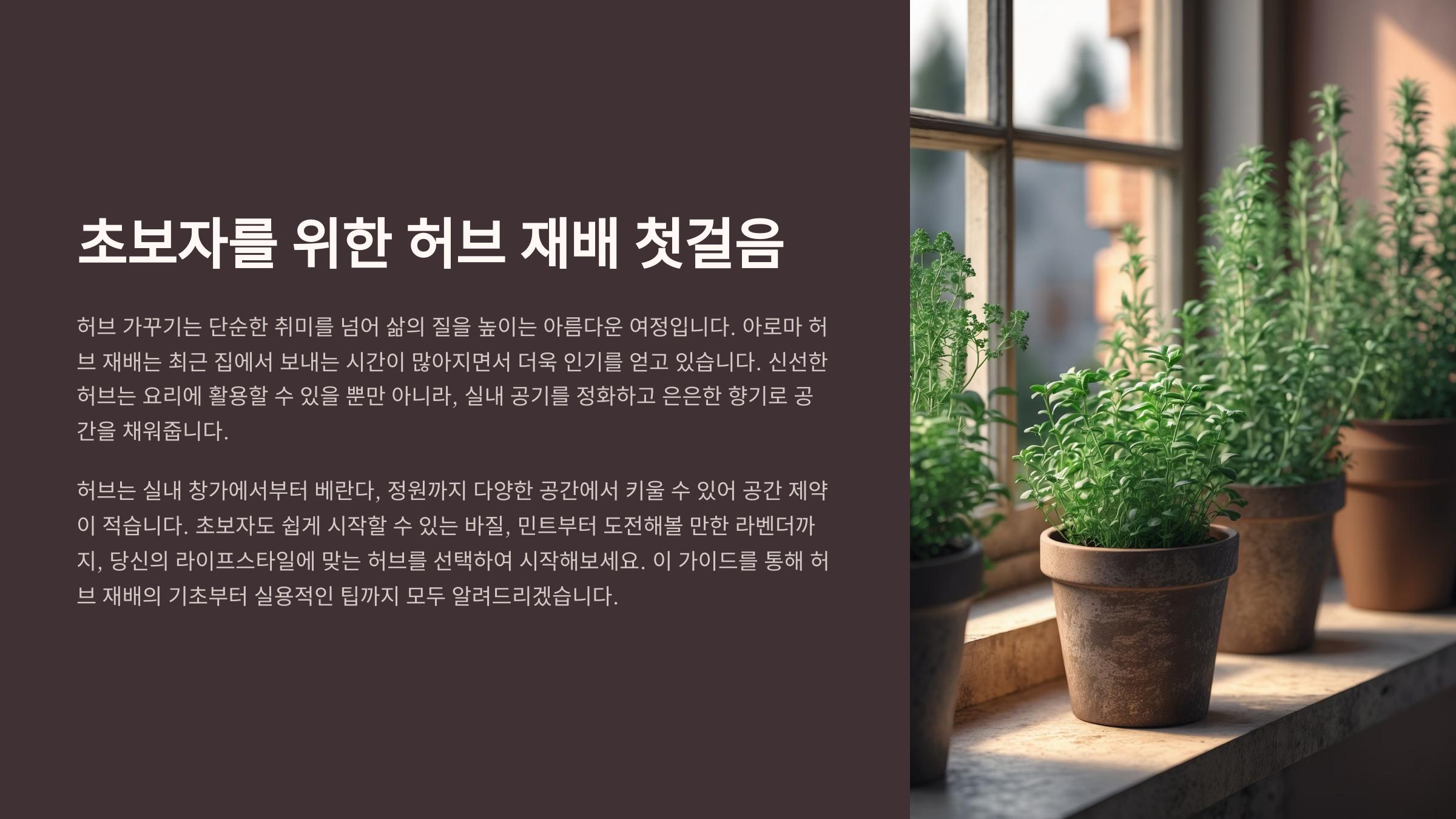 내가 생각했을 때 허브는 단순한 식물이 아니라, 집 안에 자연을 들여오는 하나의 방식 같아요. 🏡 이 글을 따라만 해도 허브 재배가 훨씬 쉬워질 거예요!
