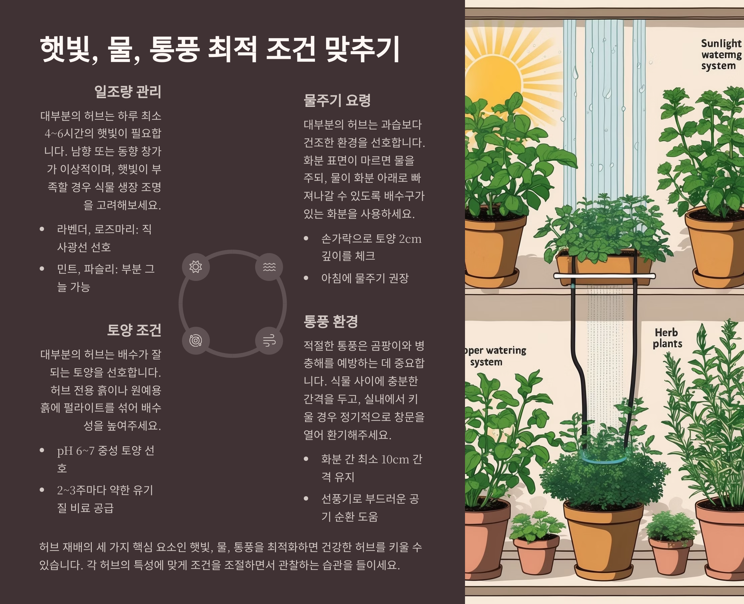 ☀️💧🍃 허브 재배 필수 조건 요약 표