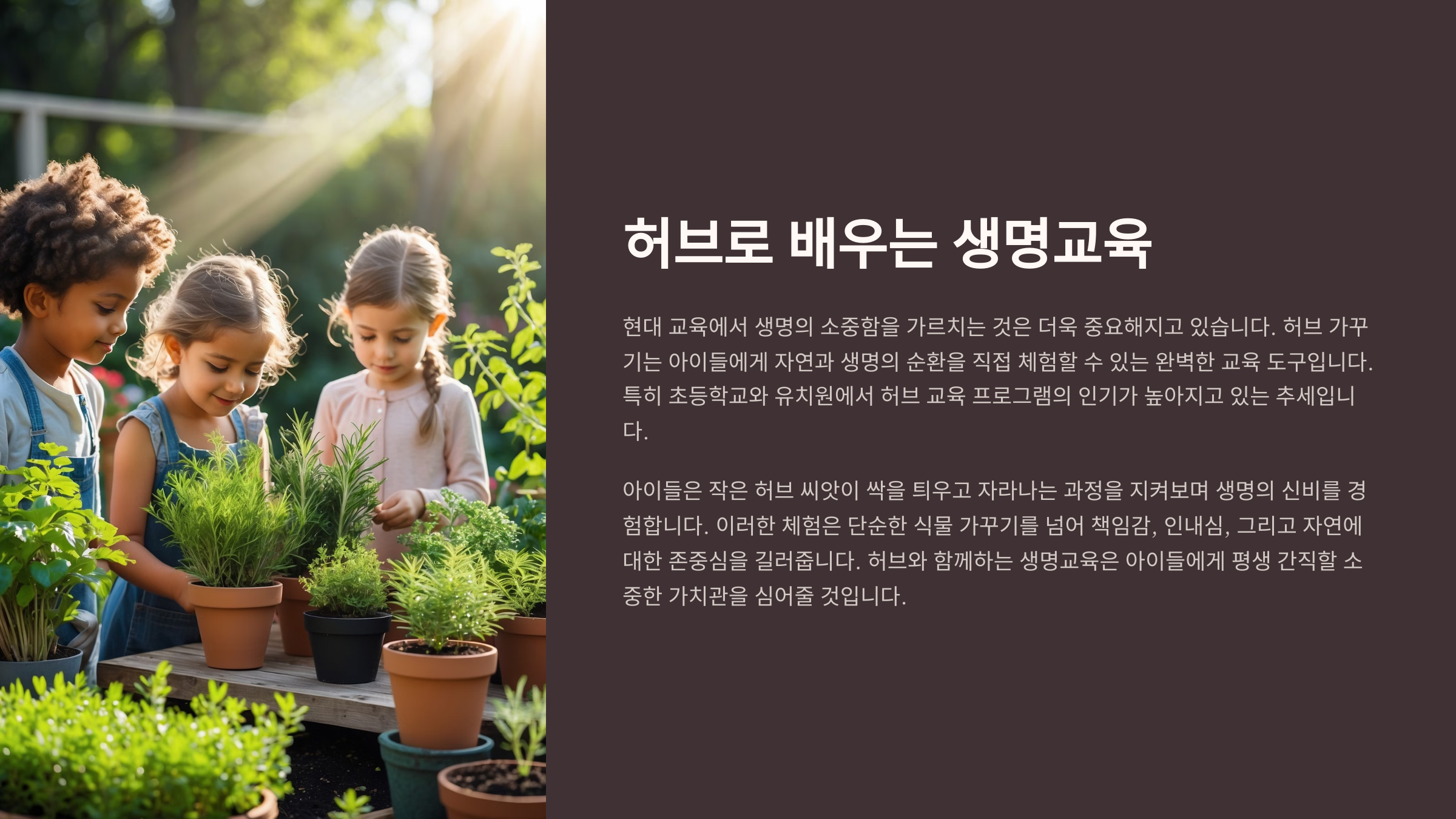 허브 키우기는 단순한 취미를 넘어서 아이와 함께 생명의 소중함을 배울 수 있는 멋진 활동이에요. 작은 씨앗에서 싹이 트고 잎이 자라나는 과정을 직접 보는 경험은 아이들에게 자연에 대한 감각을 심어주죠.