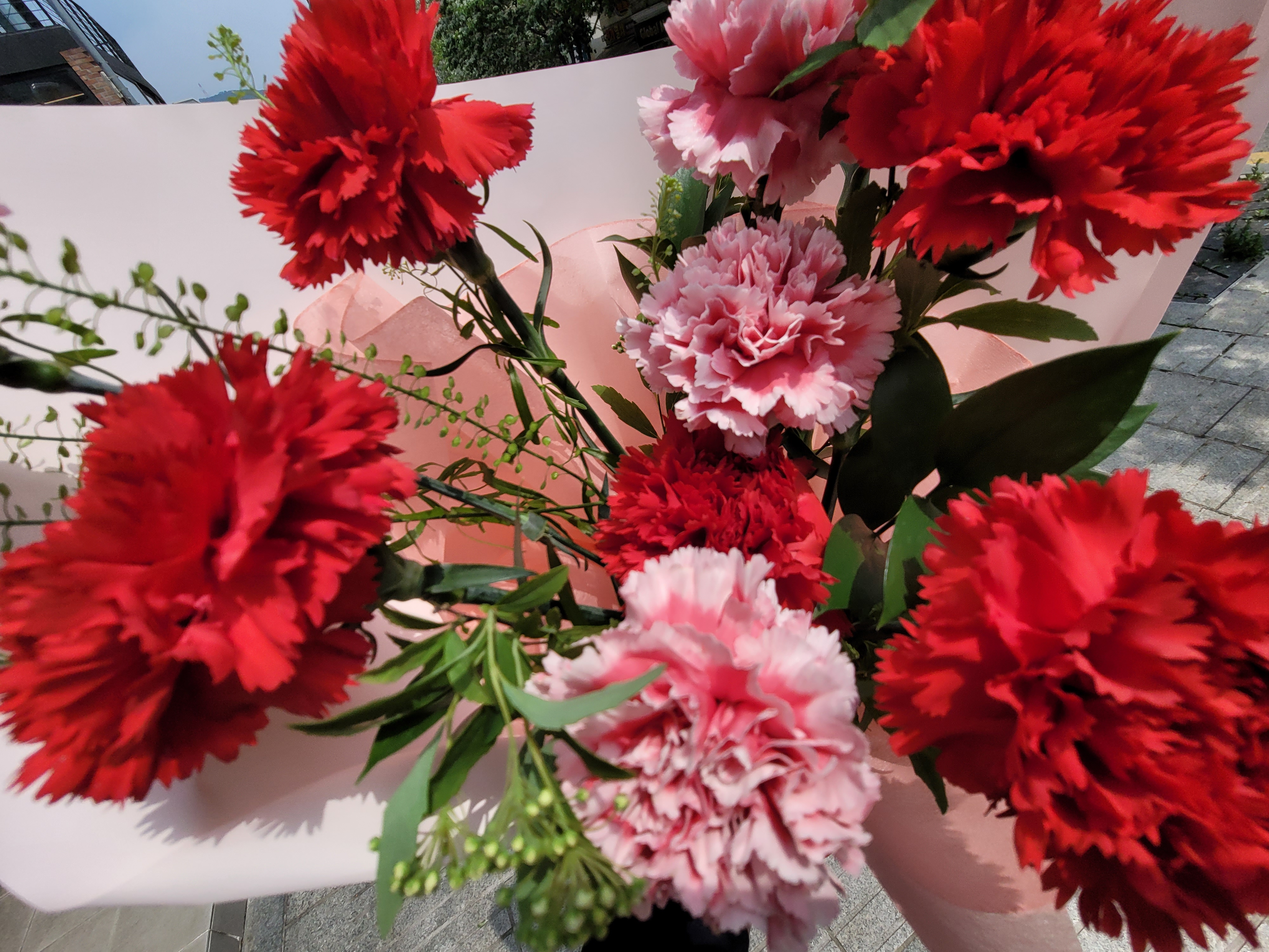 꽃다발은 너무 화려하지 않게, 카네이션과 작은 안개꽃으로 구성했어요. 은은하고 부드러운 느낌이 은사님의 따뜻한 성품과 꼭 닮아 있었어요. 꽃을 고르는 순간마저도 참 설렜어요.