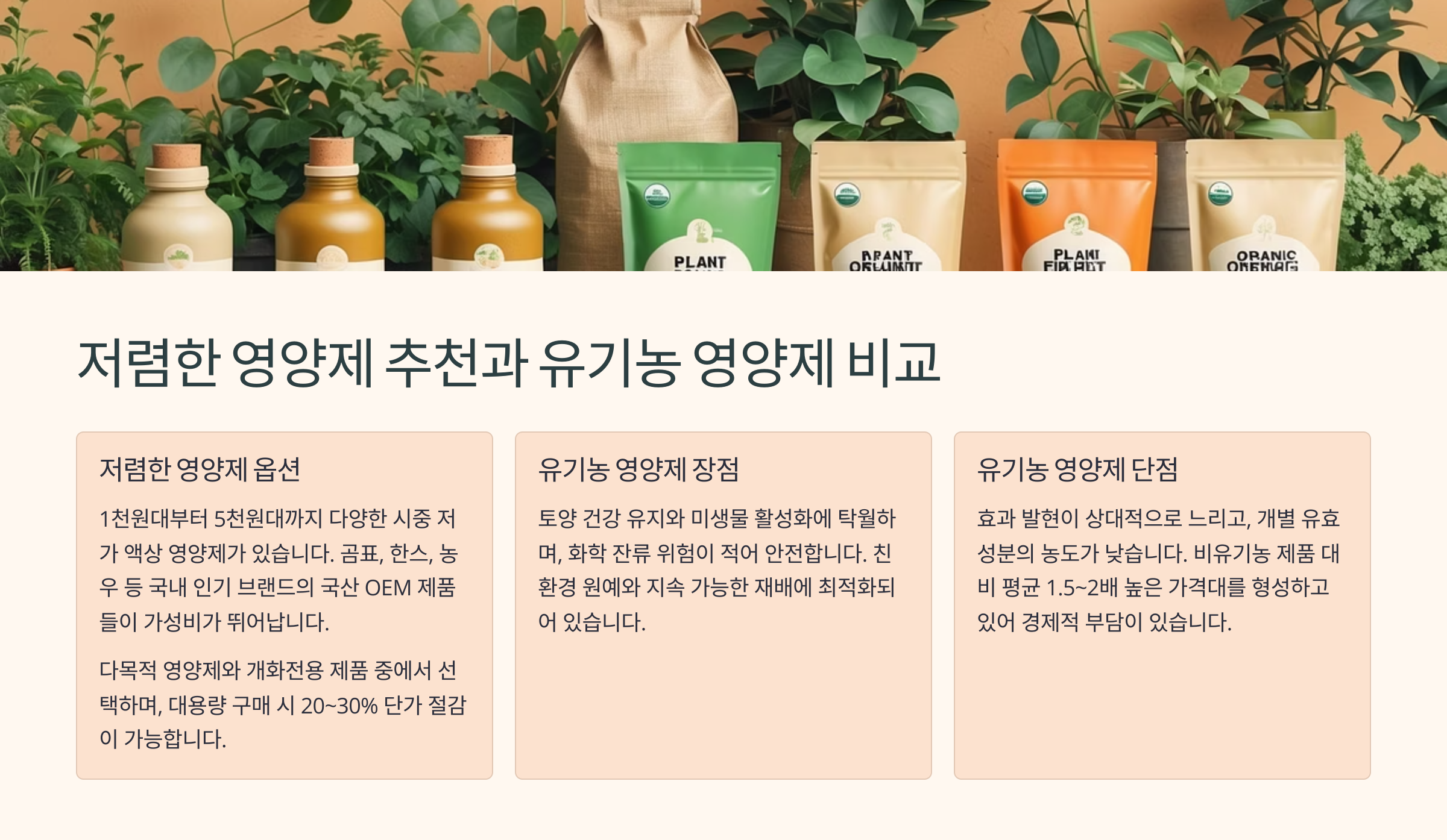 식물 영양제가 꼭 비쌀 필요는 없어요. 가성비 좋은 제품도 많고, 정기적으로 사용하는 걸 생각하면 부담 없는 가격대의 제품을 고르는 게 좋아요. 요즘엔 대형 마트나 온라인 쇼핑몰에서 쉽게 구할 수 있는 저렴하면서도 효과 좋은 영양제들이 많답니다.