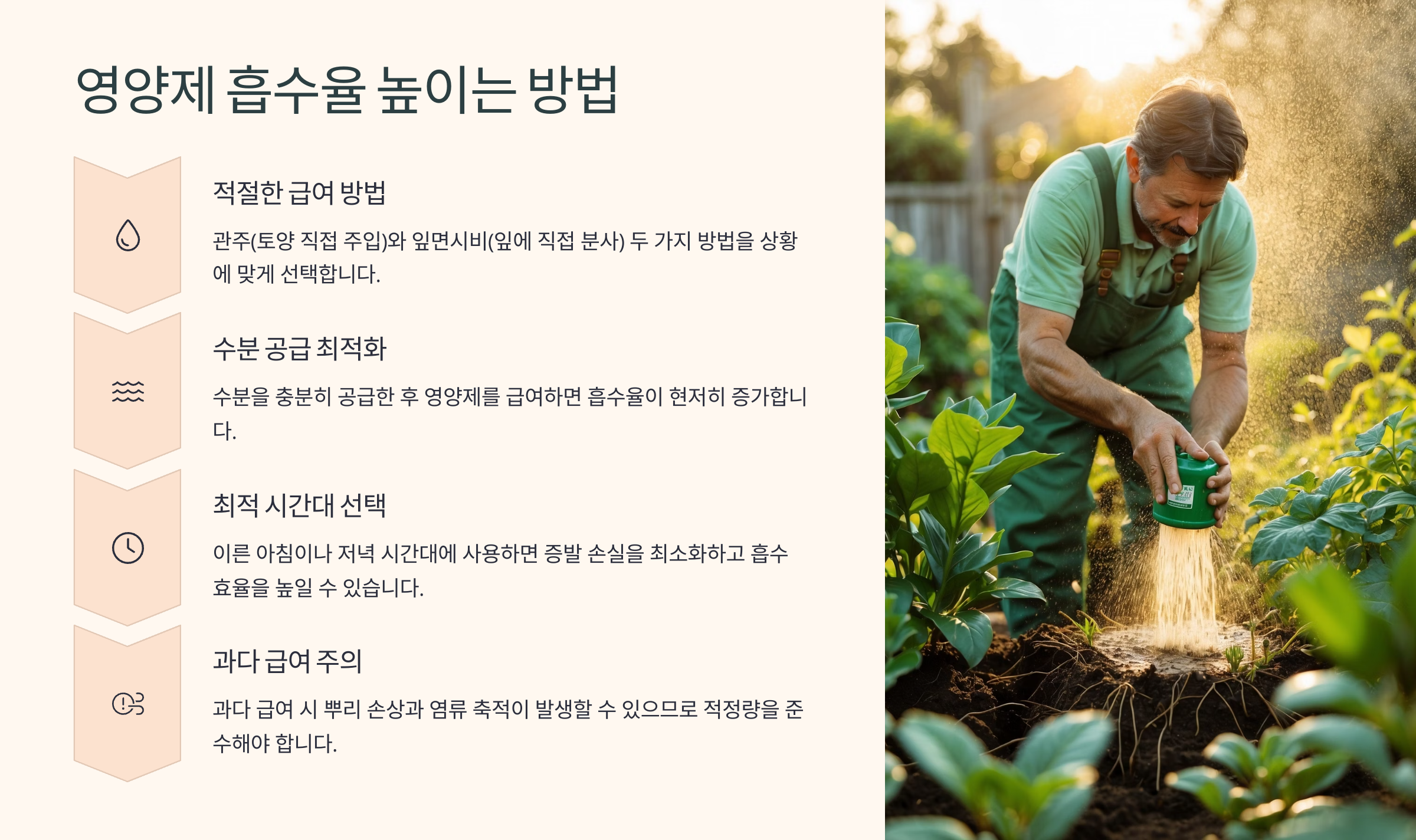 좋은 영양제를 골랐다 해도 흡수가 잘되지 않으면 효과가 반감돼요. 똑같은 제품을 써도 식물 상태에 따라 차이가 나는 이유가 바로 흡수율 때문이에요. 그래서 영양제 효과를 극대화하려면 몇 가지 조건을 맞춰주는 게 좋아요.