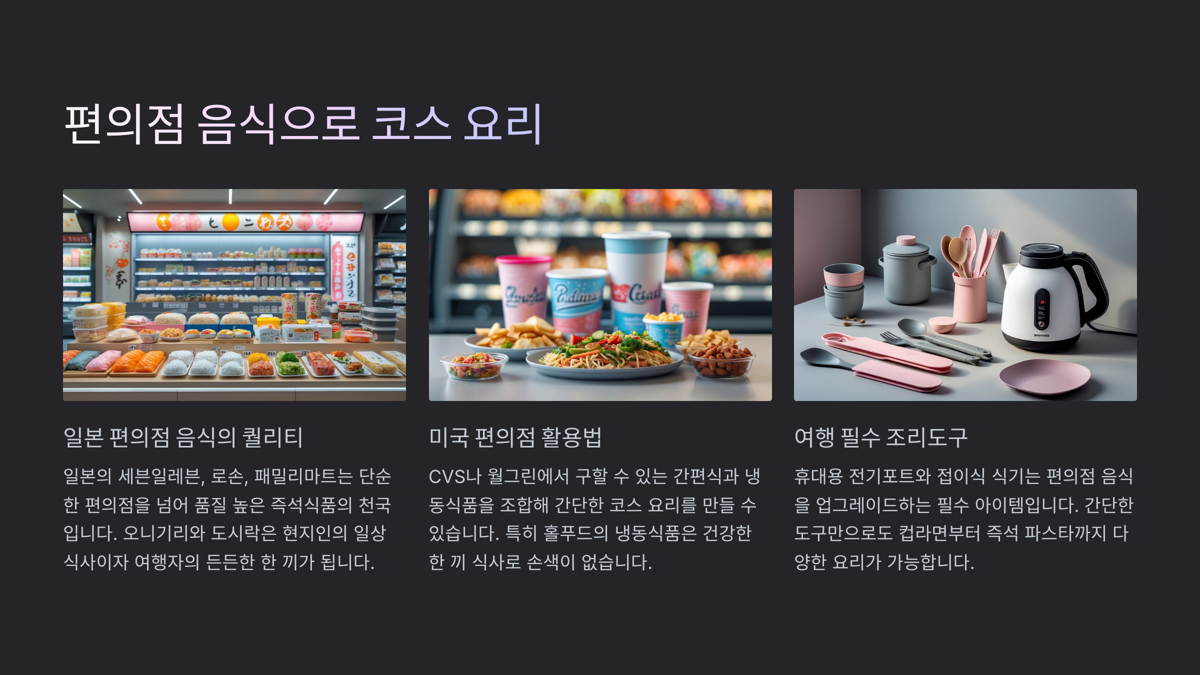 편의점 음식이 저렴하다는 건 누구나 알지만, 그걸 ‘코스 요리’처럼 즐길 수 있다는 건 새로운 발견이에요! 특히 일본, 대만, 태국 같은 나라들은 편의점 음식의 퀄리티가 아주 높아서, 굳이 레스토랑에 가지 않아도 훌륭한 한 끼가 가능하답니다.