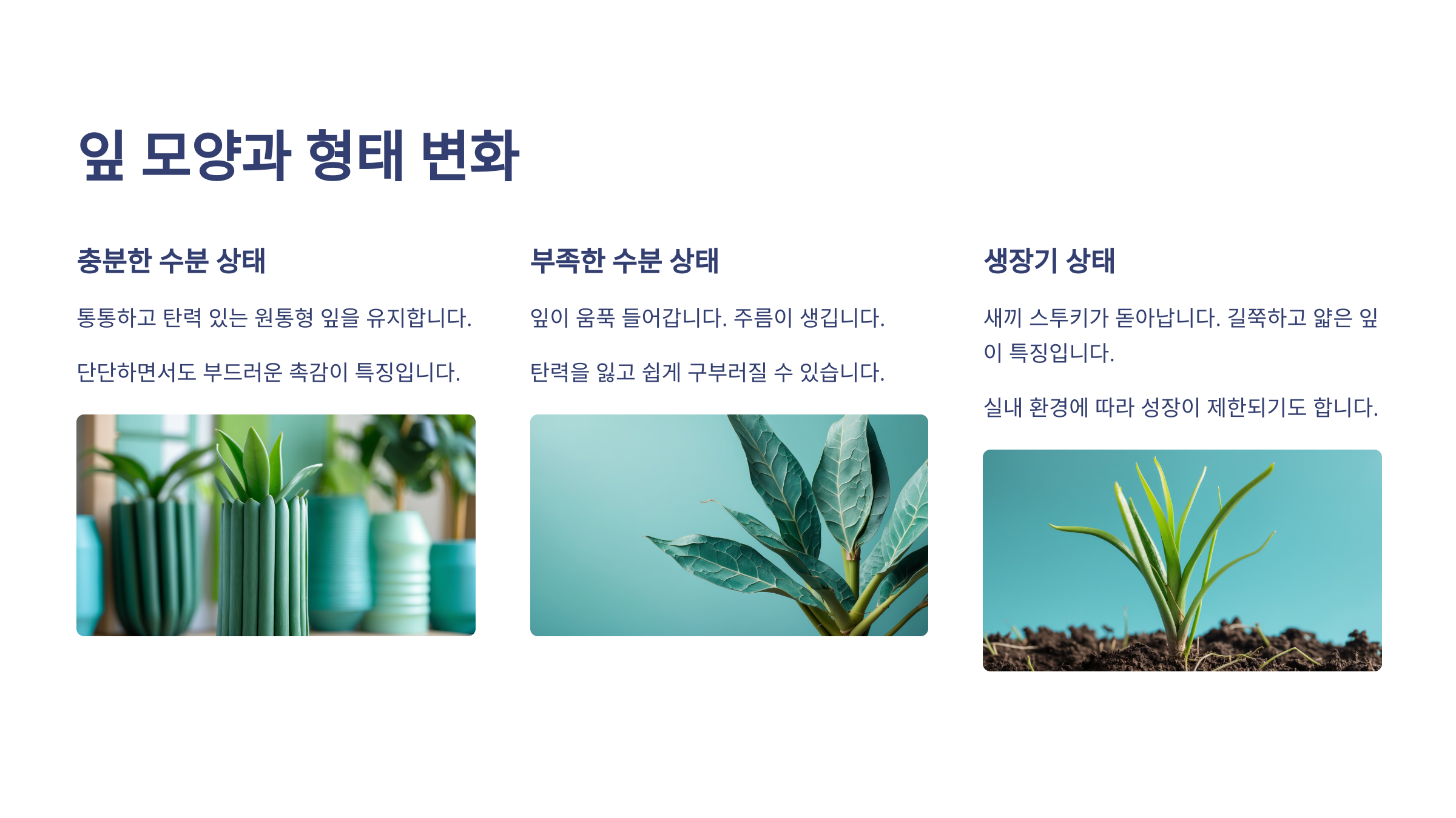 | 황색/갈색 | 심각한 수분 부족 | 즉시 물 주기 |