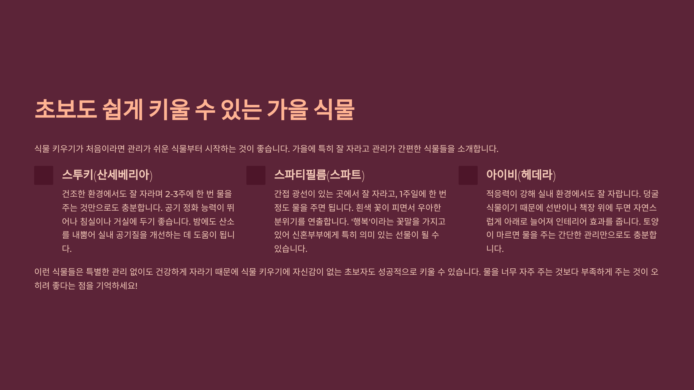 관리가 쉬운 가을 플랜트 🌾💚