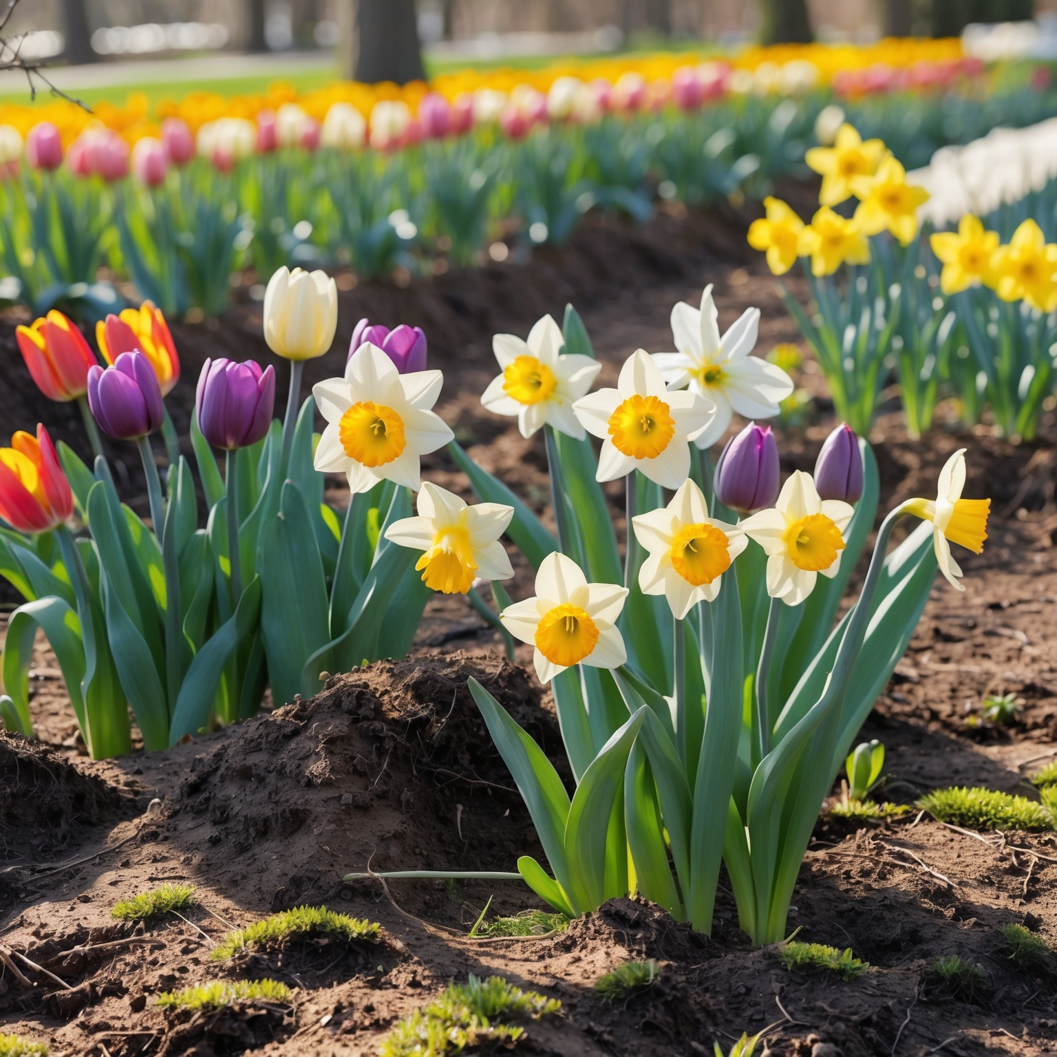 가장 대중적인 구근식물은 바로 튤립이에요. 튤립은 색상 종류가 100가지가 넘을 만큼 다양해서, 정원에 여러 색깔을 심어두면 알록달록한 풍경을 만들 수 있어요. 가을 중순부터 늦가을까지 심는 것이 좋고, 땅이 얼기 전에 뿌리를 내릴 수 있도록 해주면 봄에 건강하게 꽃을 피워요.