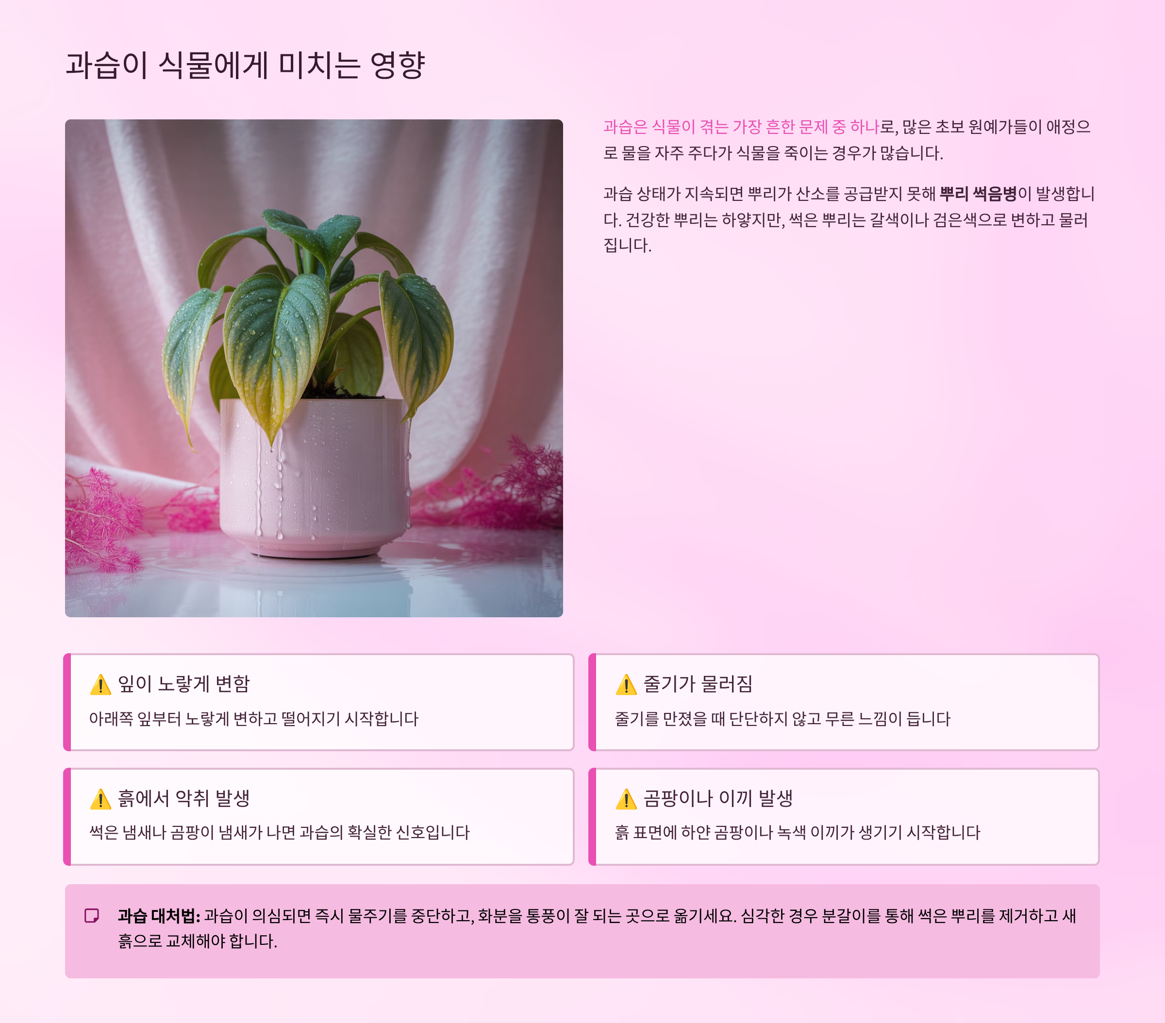그건 과습 때문일 수 있어요. 과도한 물로 인해 뿌리가 썩고, 결국 식물이 죽는 경우가 정말 많답니다.