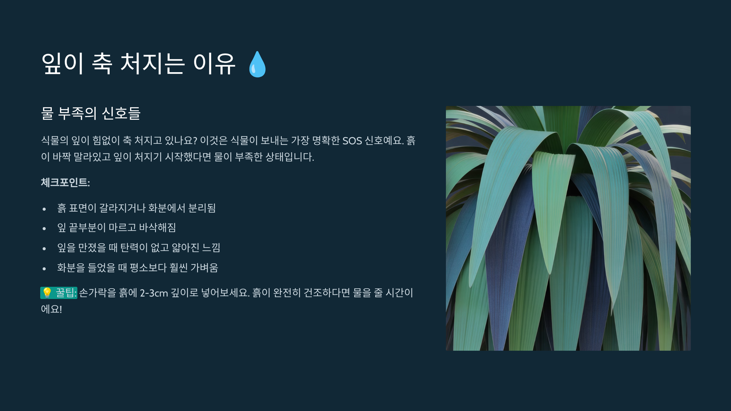 잎이 축 처진 걸 볼 때, 그냥 '덥나?' 하고 넘기기보단 토양 상태, 햇빛 방향, 바람의 흐름까지 함께 살펴보는 게 좋아요. 식물은 말은 못하지만, 잎을 통해 말하고 있거든요. 그 작은 신호들을 읽을 수 있다면, 식물 키우는 재미도 훨씬 커질 거예요! 🌱