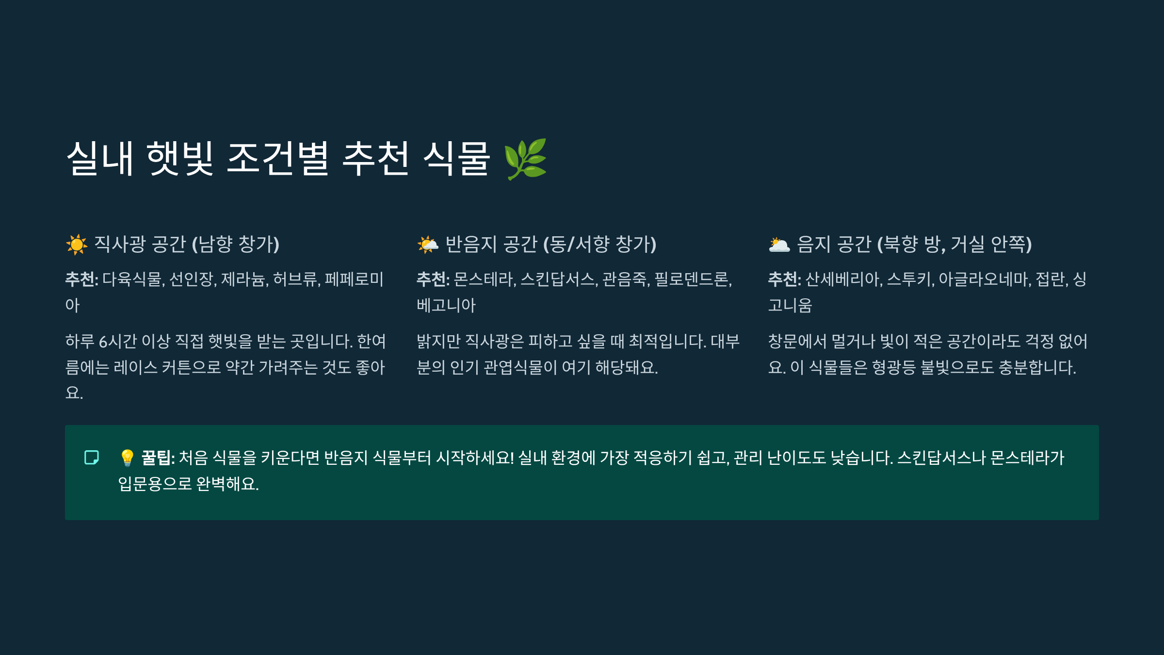 🌞 공간별 햇빛 조건 & 추천 식물 정리표 📋