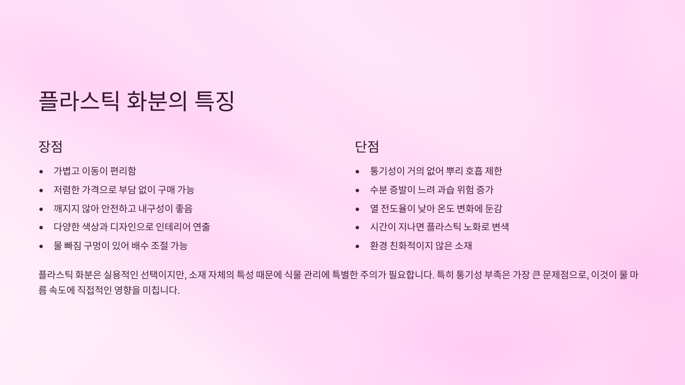 플라스틱 화분 물 마름이 느린 이유와 해결법