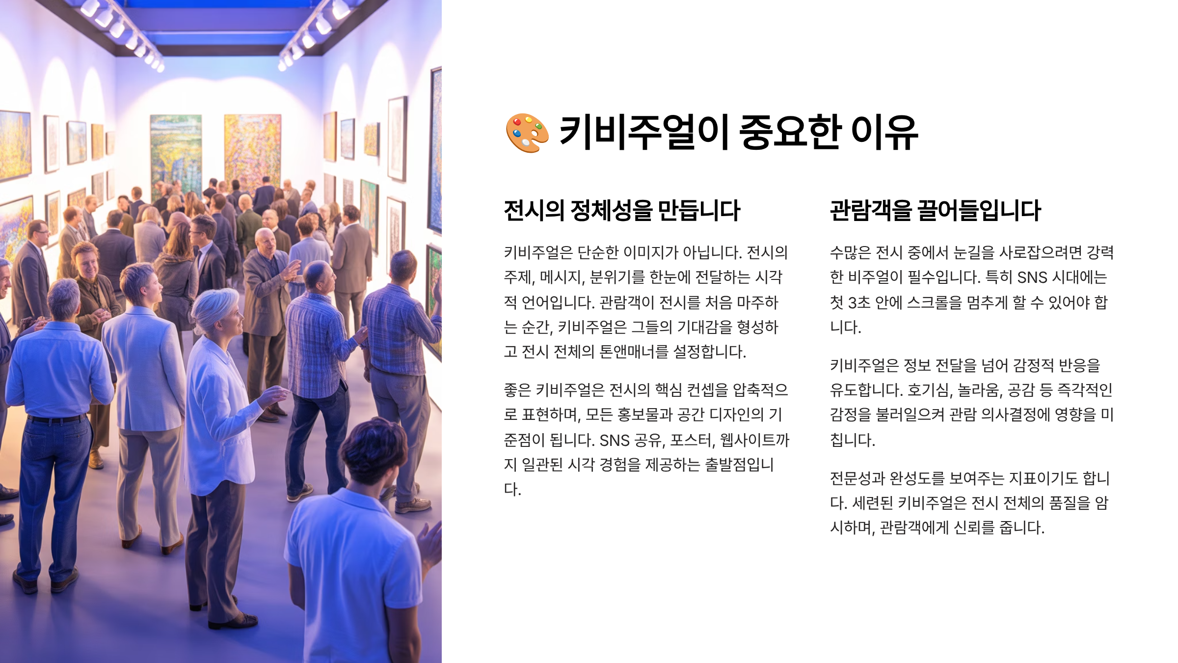 다음에는 실제 전시에서 효과적이었던 키비주얼 사례를 분석해볼게요. 어떤 전략이 먹혔는지 함께 보면서 인사이트를 얻어봐요! 🔎