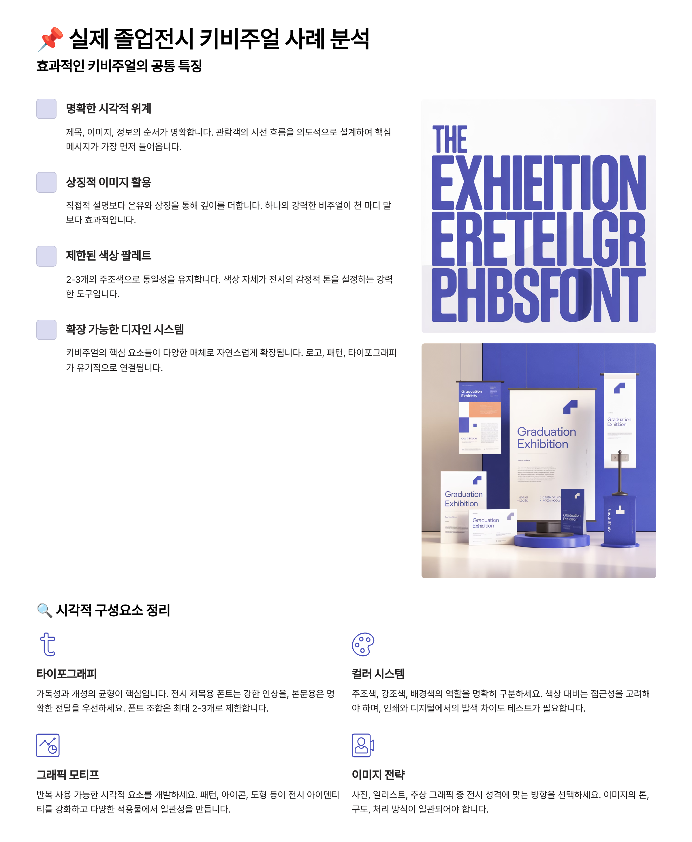 ⛔ 본 내용은 졸업전시 키비주얼 기획을 위한 정보 제공 목적이며, 학교/기관의 정책이나 커리큘럼과는 다를 수 있어요. 최종 제작 전 반드시 교수님 혹은 관계자와 확인하세요.