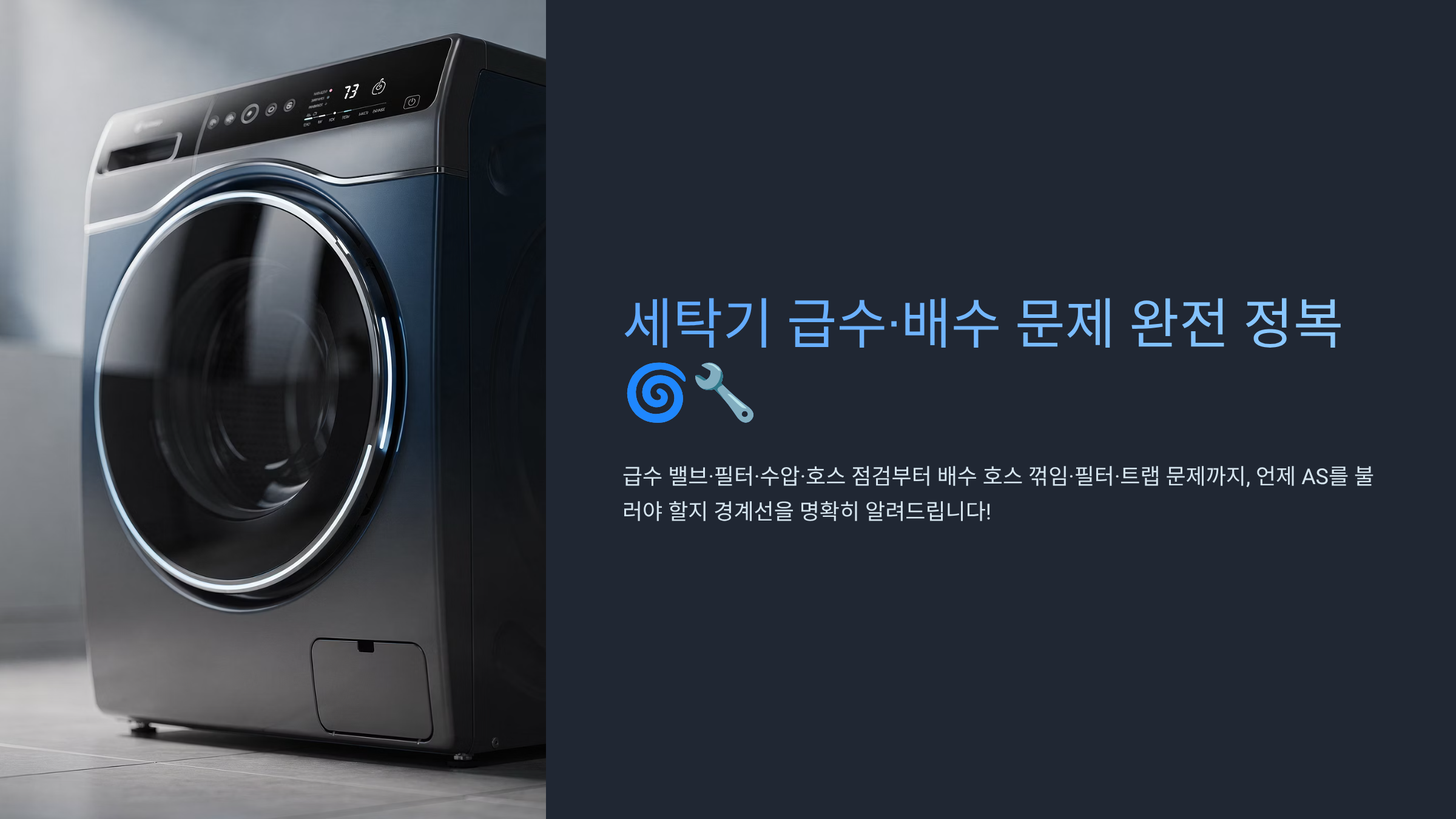 세탁기 급수·배수 문제는 대부분 호스나 필터, 또는 수압 같은 단순한 원인일 때가 많아요. 제가 생각했을 때 이건 꼭 누구나 알아야 하는 생활 필수 지식이더라고요. 누구나 쉽게 따라할 수 있도록 단계별로 알려드릴게요.