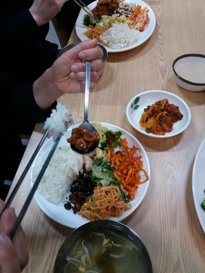 친구가 여기 점심시간 늦게 오면 반찬이 떨어진다고 여기서는 좀 일찍 오는 게 좋다고 하네요.