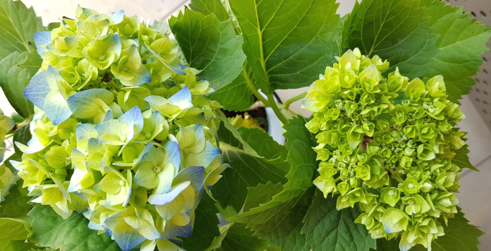수국 꽃들이 잘 어우려 저 있어 주변의 색과도 잘 어울리면 수국 꽃이 내는 아름다움