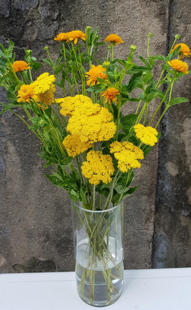 근데 아킬레아,헬리옵시스 꽃은 서로 비슷한 면이 있어 같은 화병 속에서도 괜찮을 것 같아