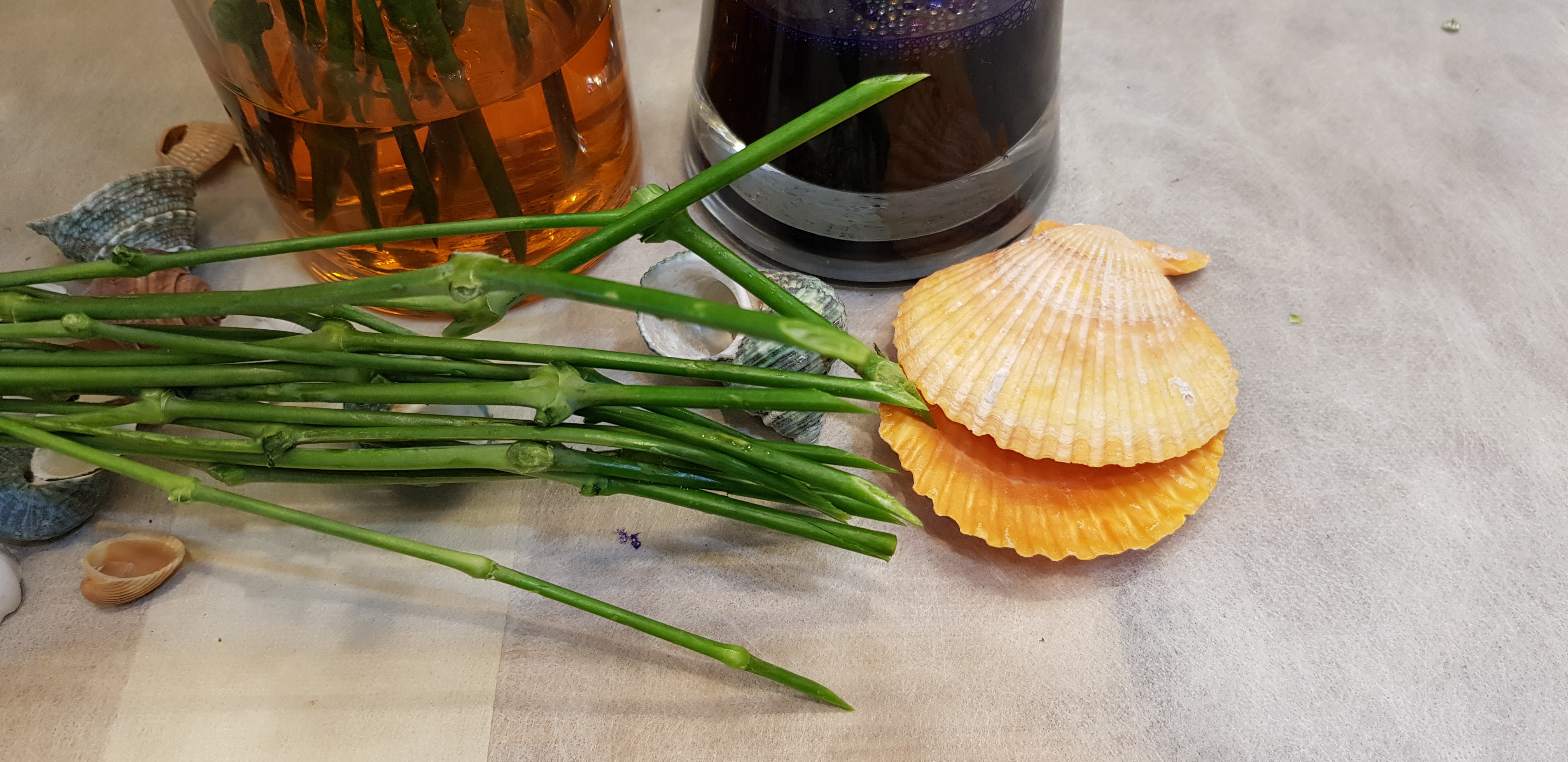 좌측은 노란색 프리저브드 용액을 준비했고요. 오른쪽은 보라색 프리저브드 용액을 준비했습니다.