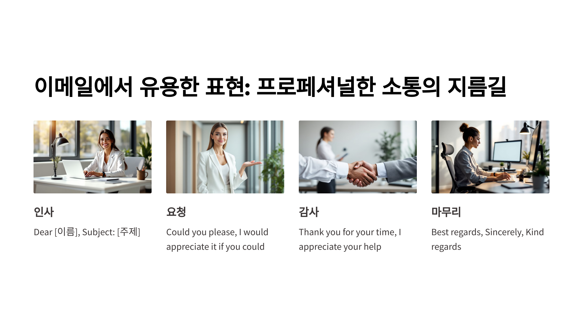 이메일은 비즈니스 의사소통에서 가장 흔히 사용되는 도구 중 하나예요. 잘 작성된 이메일은 전문성을 나타내고, 잘못된 표현은 오해를 초래할 수 있답니다. 다음은 이메일에서 자주 사용되는 필수 표현들이에요.