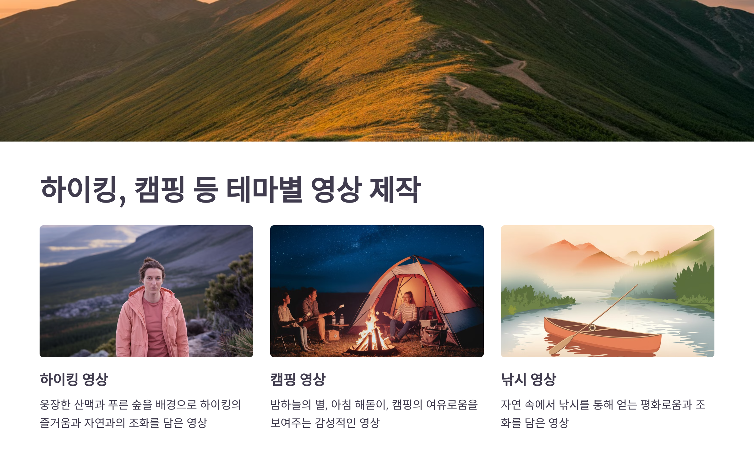 하이킹, 캠핑 등 테마별 영상 제작
