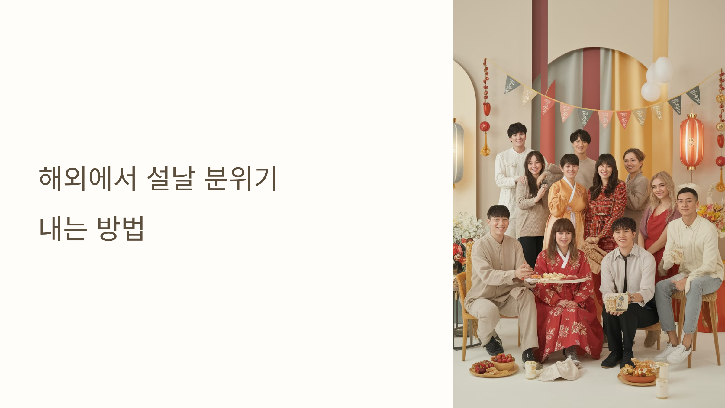 해외에서 설날을 맞이하는 한인들이라면, 고향의 분위기를 내는 방법이 고민될 수 있어요. 가장 간단한 방법은 전통적인 설날 소품을 활용해 집 안을 꾸미는 거예요. 예를 들어, 복주머니, 전통 한복 장식, 붉은색과 황금색 장식품 등을 배치하면 설날 느낌을 충분히 낼 수 있어요.