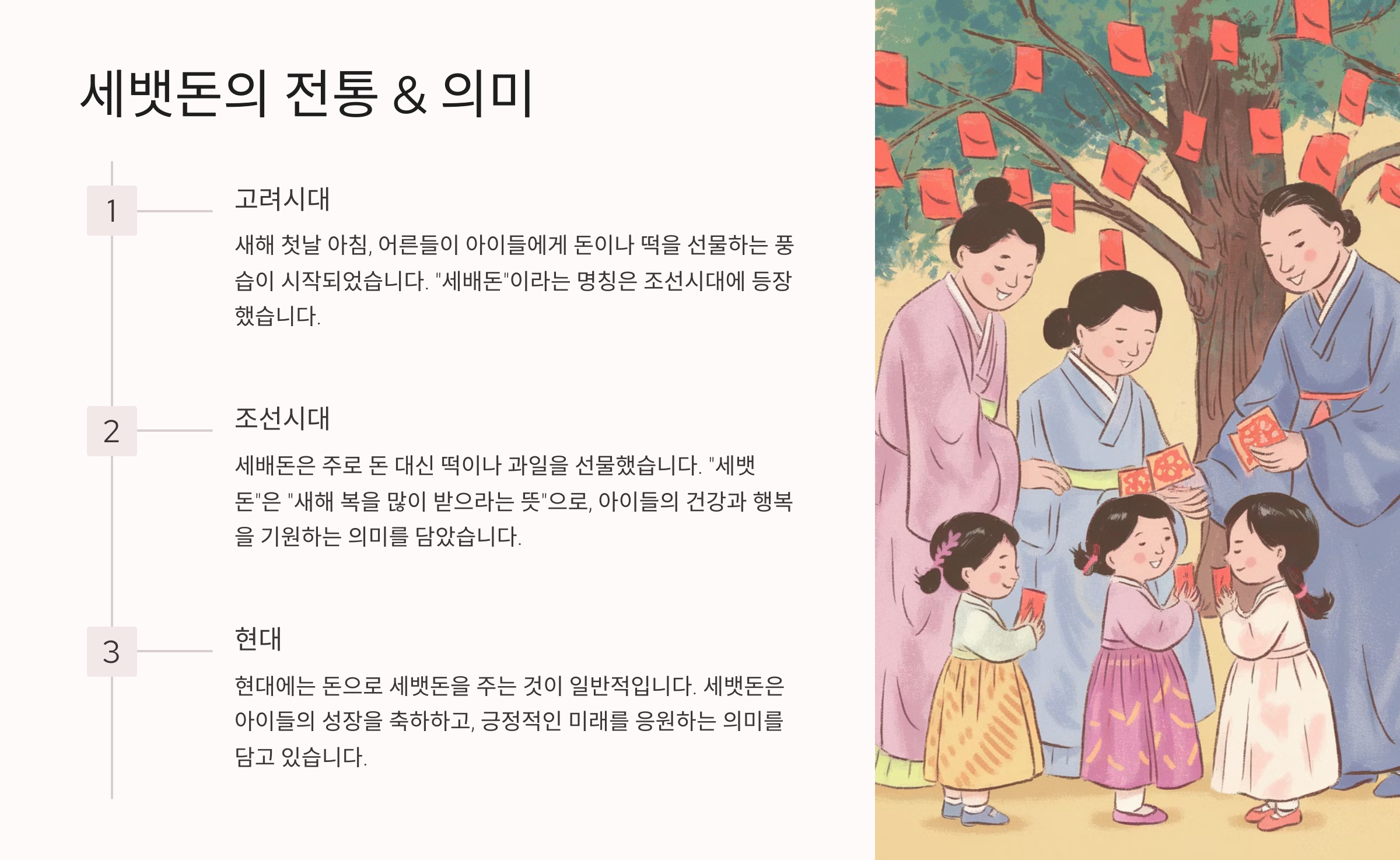 세뱃돈은 세대를 잇는 전통으로, 어른과 아이들 간의 유대감을 더욱 강화시켜주는 중요한 역할을 해요. 이를 통해 한국의 가족 중심 문화와 설날의 의미를 다시 한번 느낄 수 있어요.