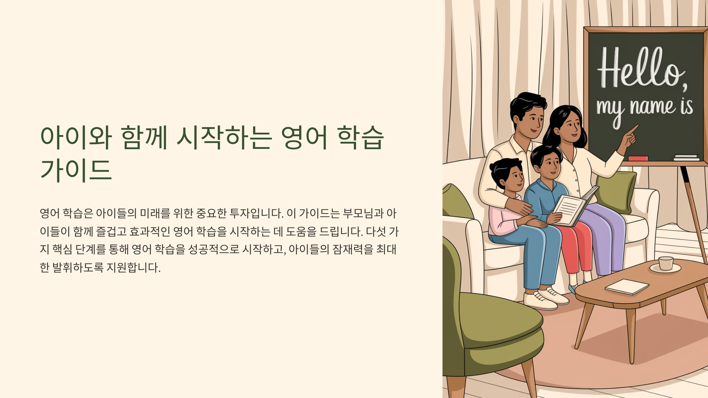 이제 영어 학습을 시작할 준비가 되었어요! 다음 섹션에서는 부모와 아이가 함께 영어를 배울 수 있는 효과적인 방법을 소개할게요. 😊
