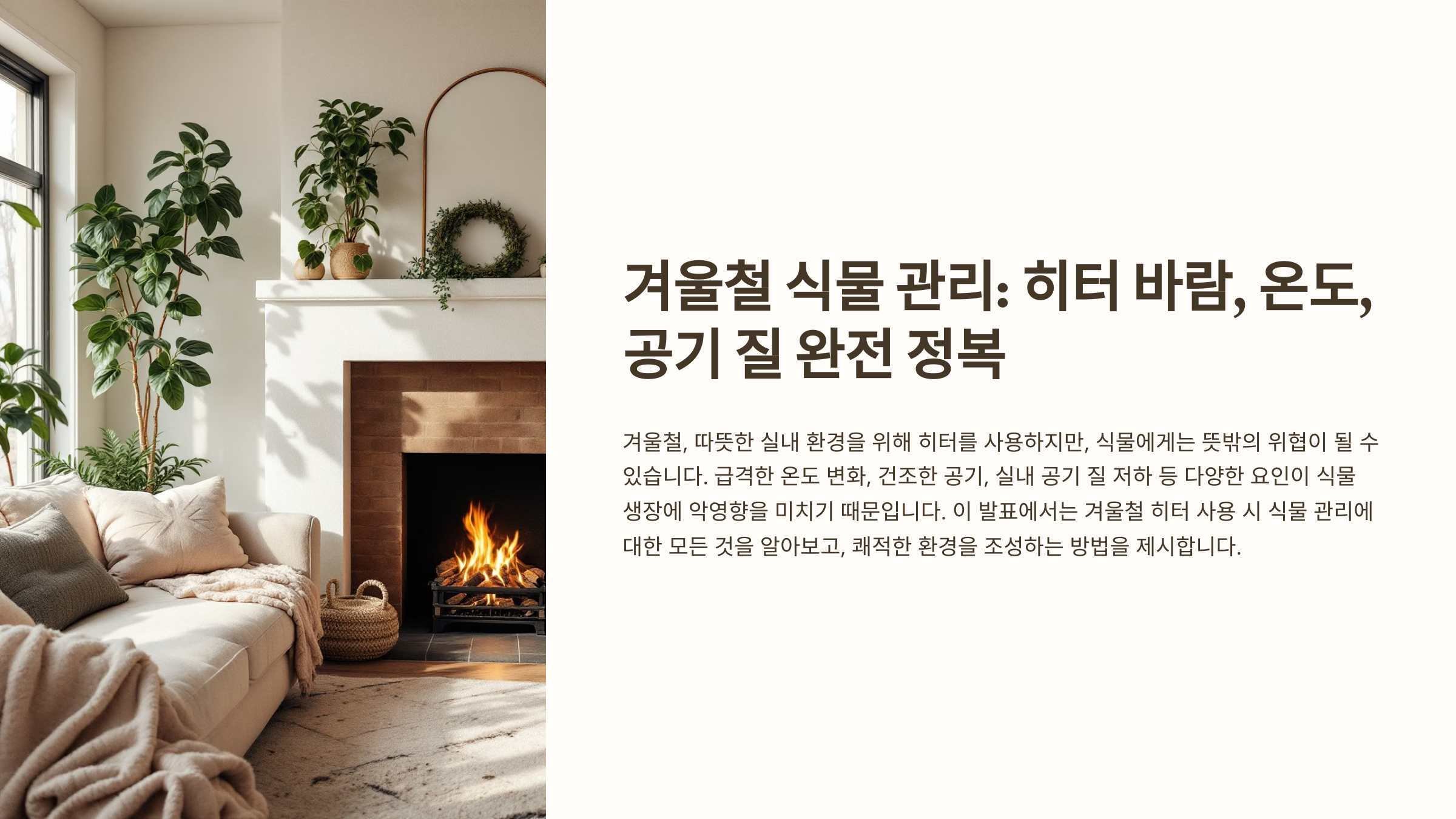 태그: 히터, 실내 식물, 겨울철 식물 관리, 습도 조절, 공기 순환, 식물 건강, 가습기, 해충 예방, 잎 끝 갈변, 물 주기
