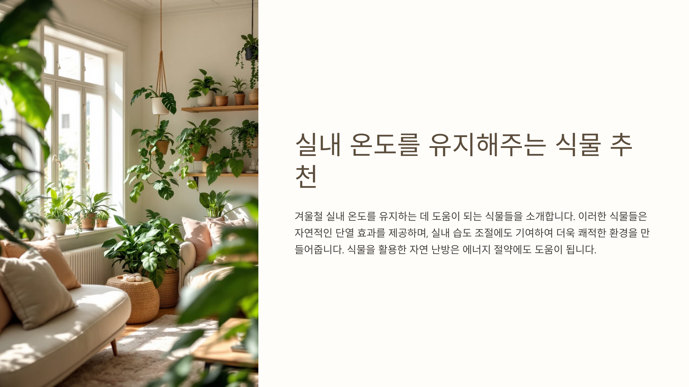 이런 식물들은 난방비를 절약하면서도 쾌적한 실내 환경을 유지하는 데 큰 도움이 돼요.