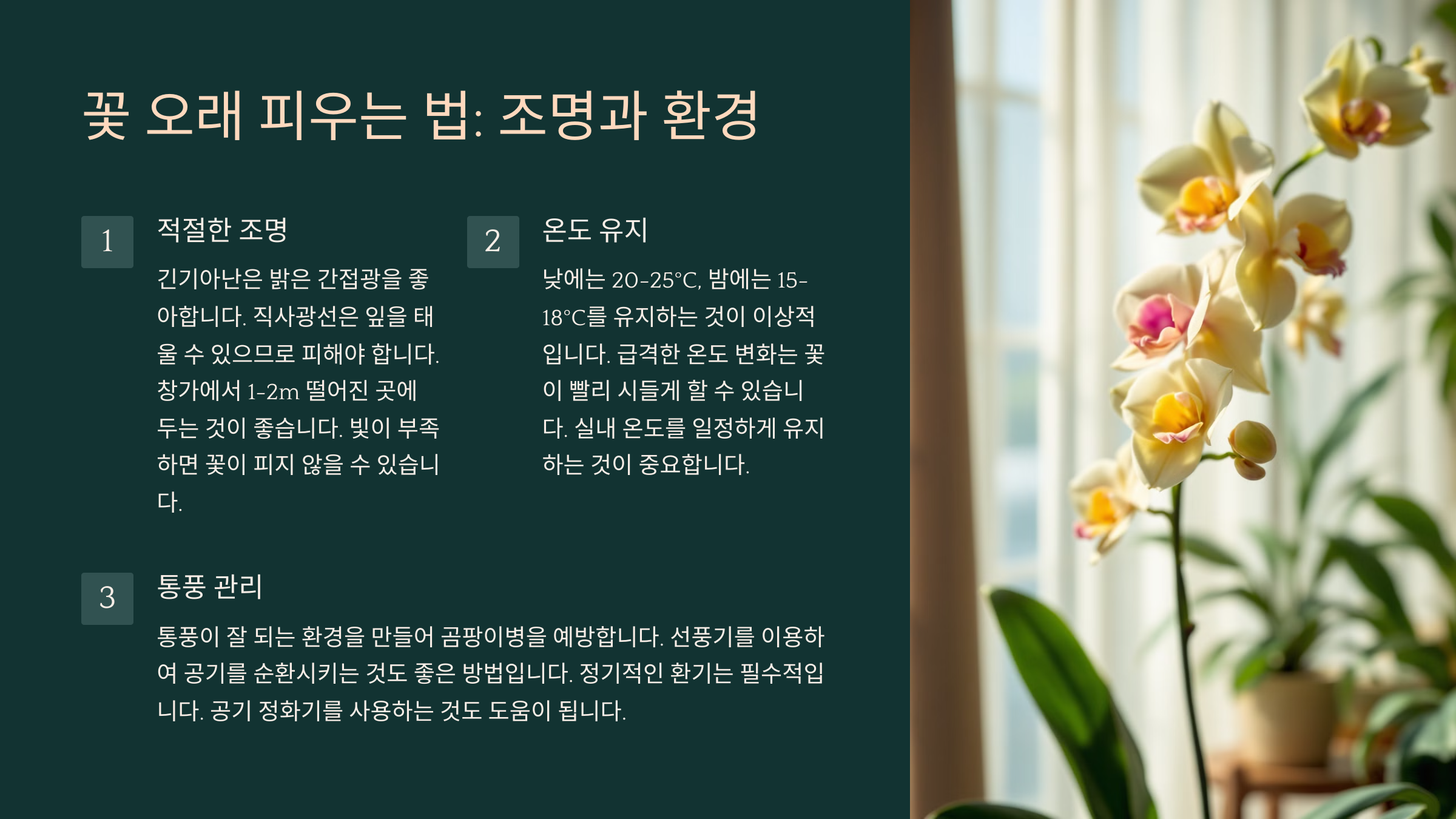 긴기아난 꽃을 건강하게 피우려면 최적의 환경을 조성하는 것이 중요해요. 특히 적절한 온도와 습도 조절이 핵심이에요.