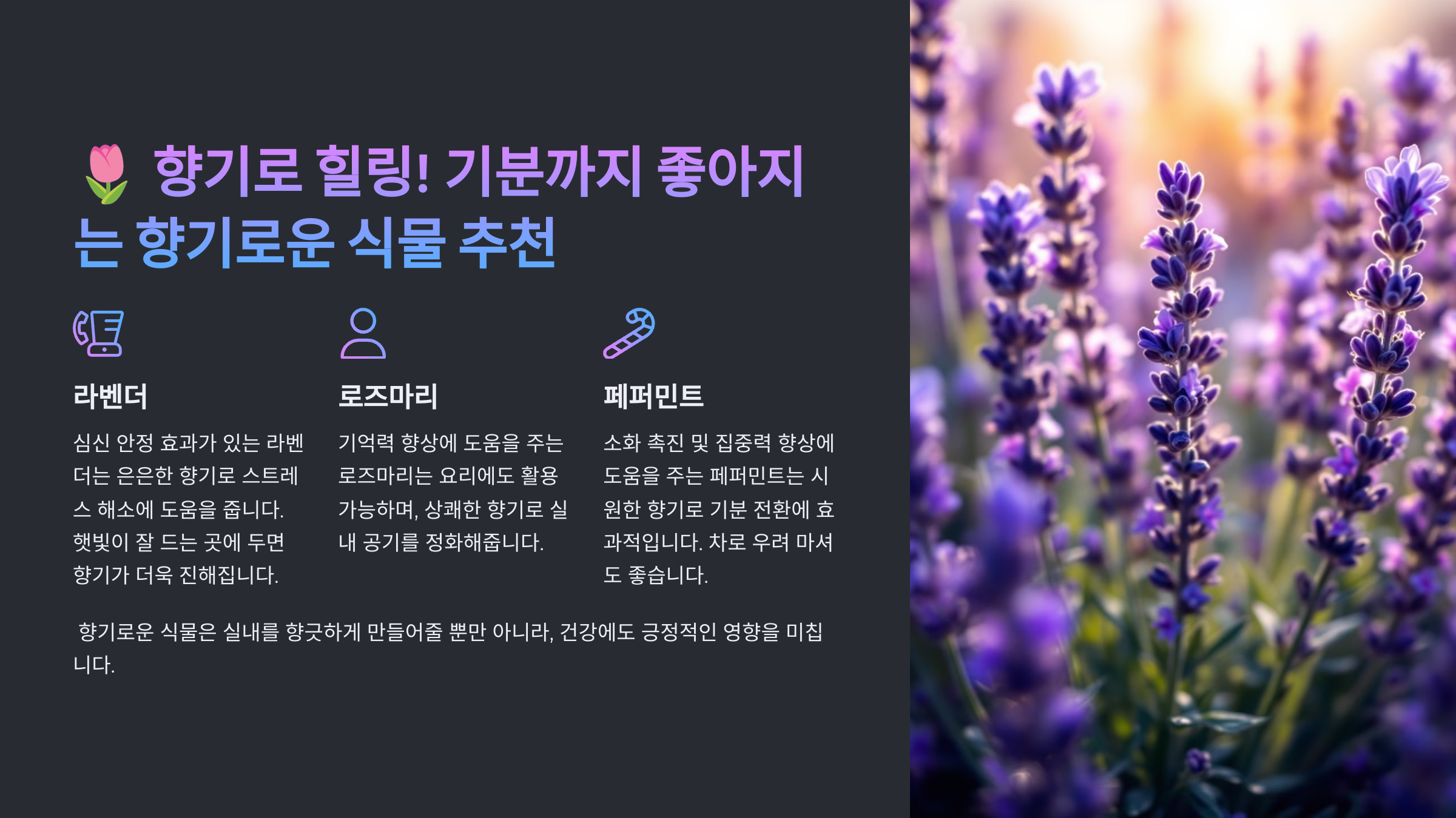 1️⃣ **라벤더 (Lavandula angustifolia)**