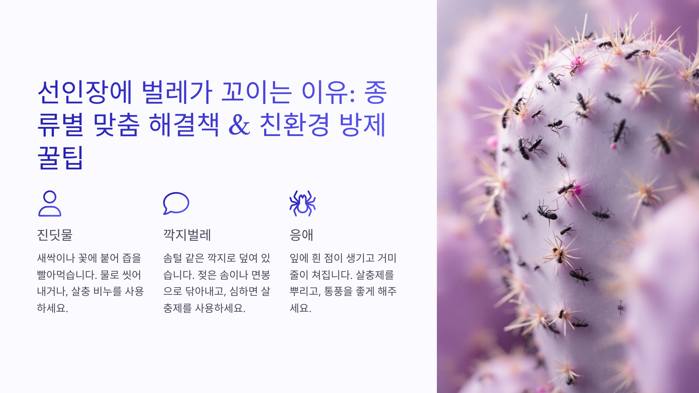 정기적으로 선인장을 확인하고, 벌레가 보이면 즉시 제거하는 것이 중요해요! 🧐