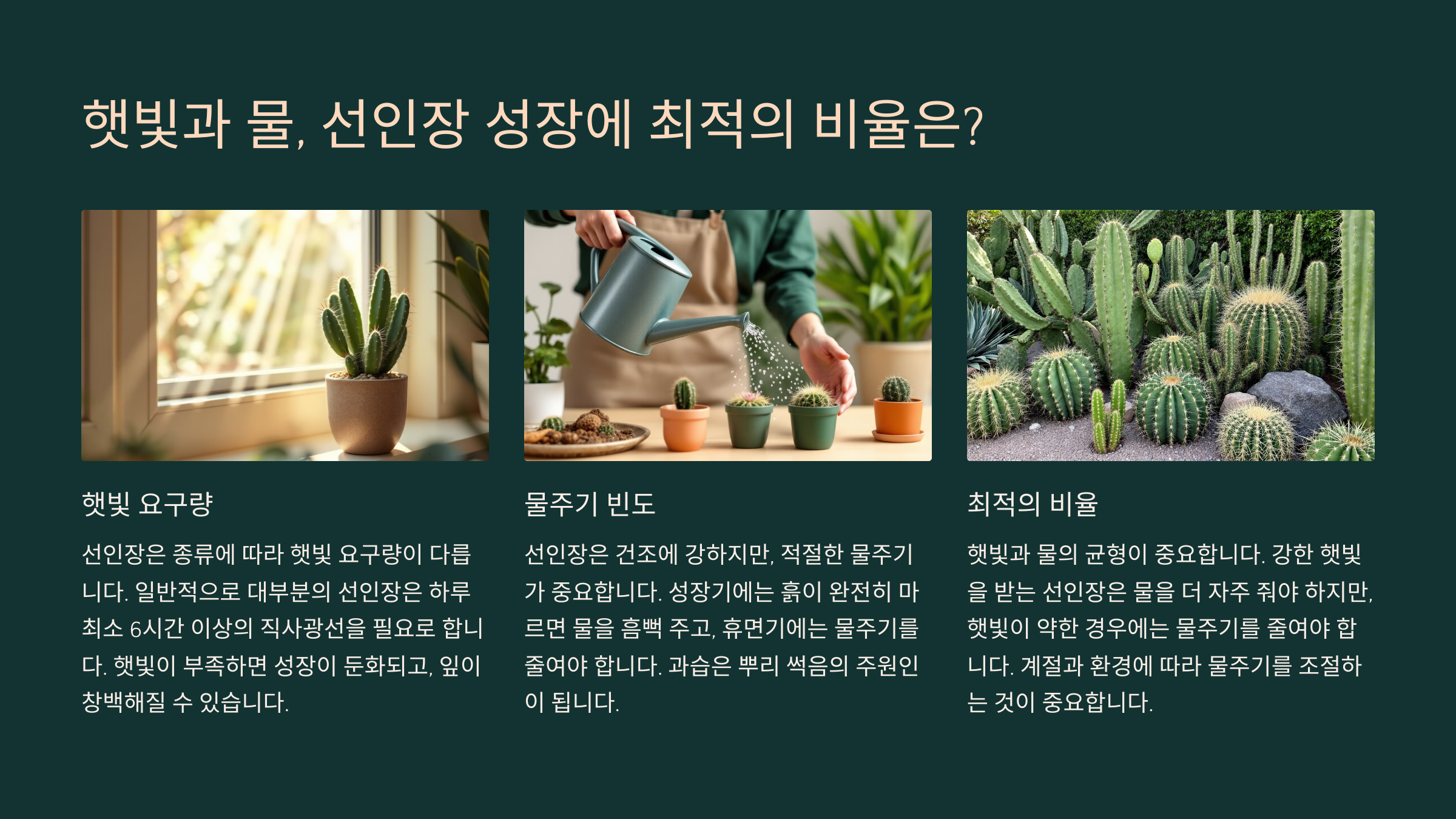 ✅ 햇빛과 물 주기의 균형을 맞추면 선인장이 더욱 건강하고 빠르게 성장할 수 있어요! 🌵🚀