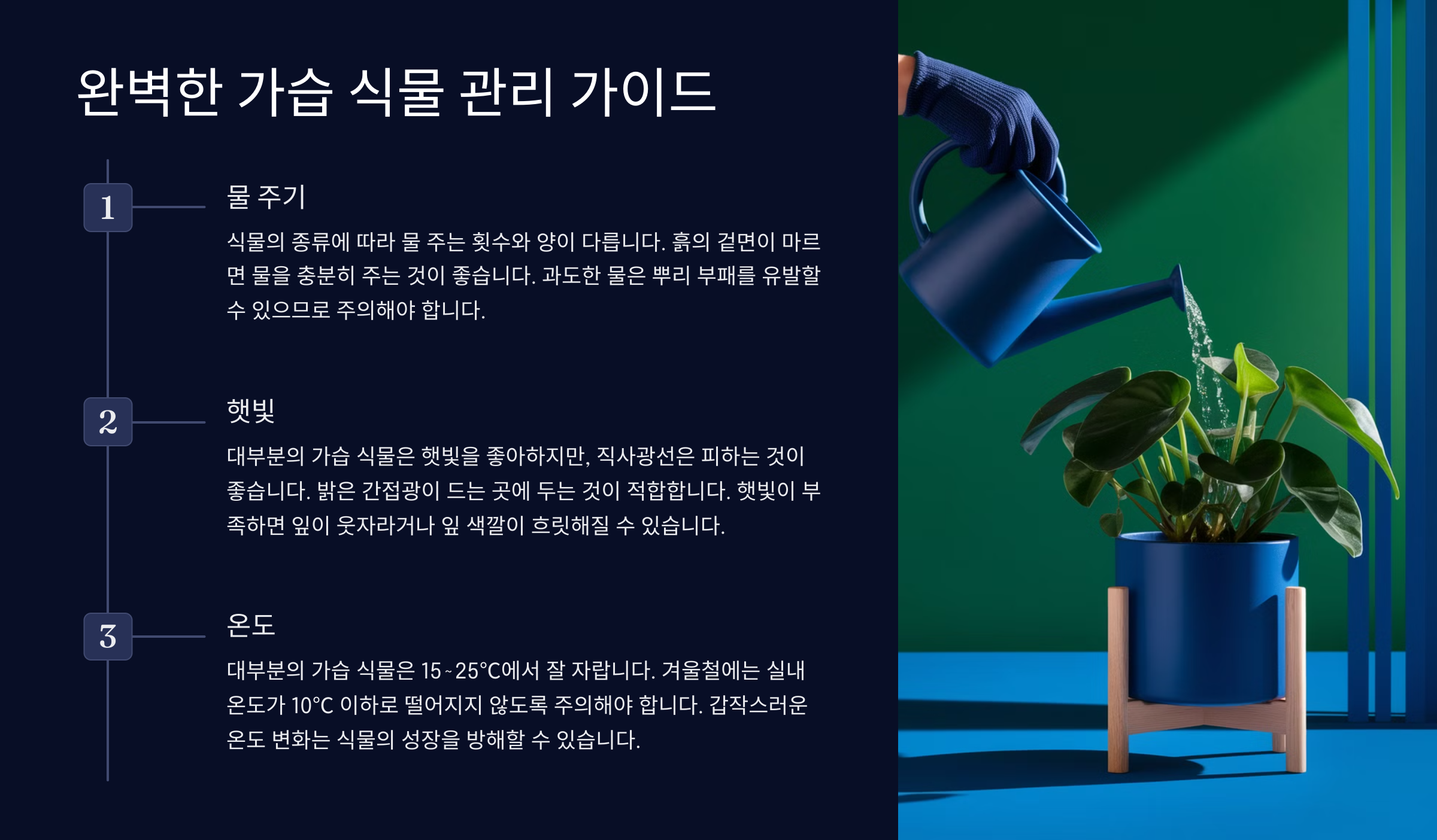 "식물에 물을 언제 줘야 할지 모르겠어요"라는 말을 종종 듣는데요, 저도 예전엔 물을 너무 자주 주거나 너무 늦게 줘서 식물이 시들기도 했답니다. 😅 하지만 적절한 물 주기와 위치 선정만 알면 식물이 건강하게 잘 자라요! 🌱 지금부터 가습 효과를 극대화할 수 있는 꿀팁을 알려드릴게요. 🏡💧