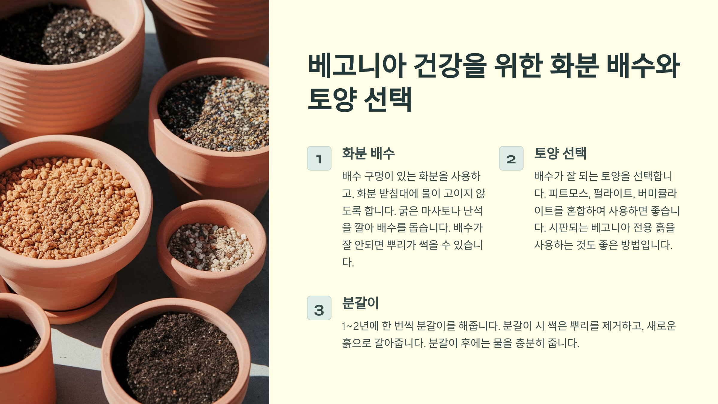 베고니아 화분 배수와 흙 선택 중요성 🏺