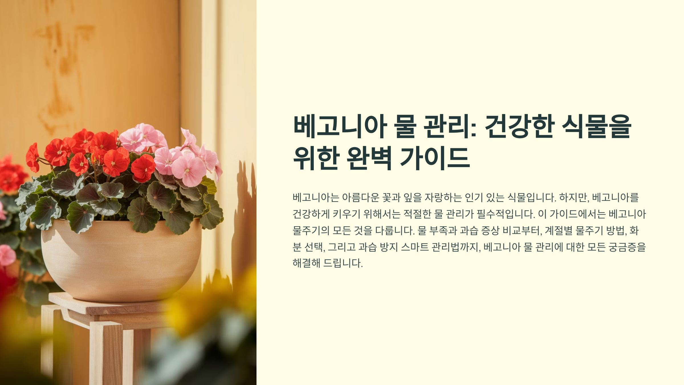 베고니아의 올바른 물주기 방법과 관리법을 모두 알아봤어요! 😊 이제 여러분도 베고니아를 더욱 건강하고 싱그럽게 키울 수 있을 거예요.