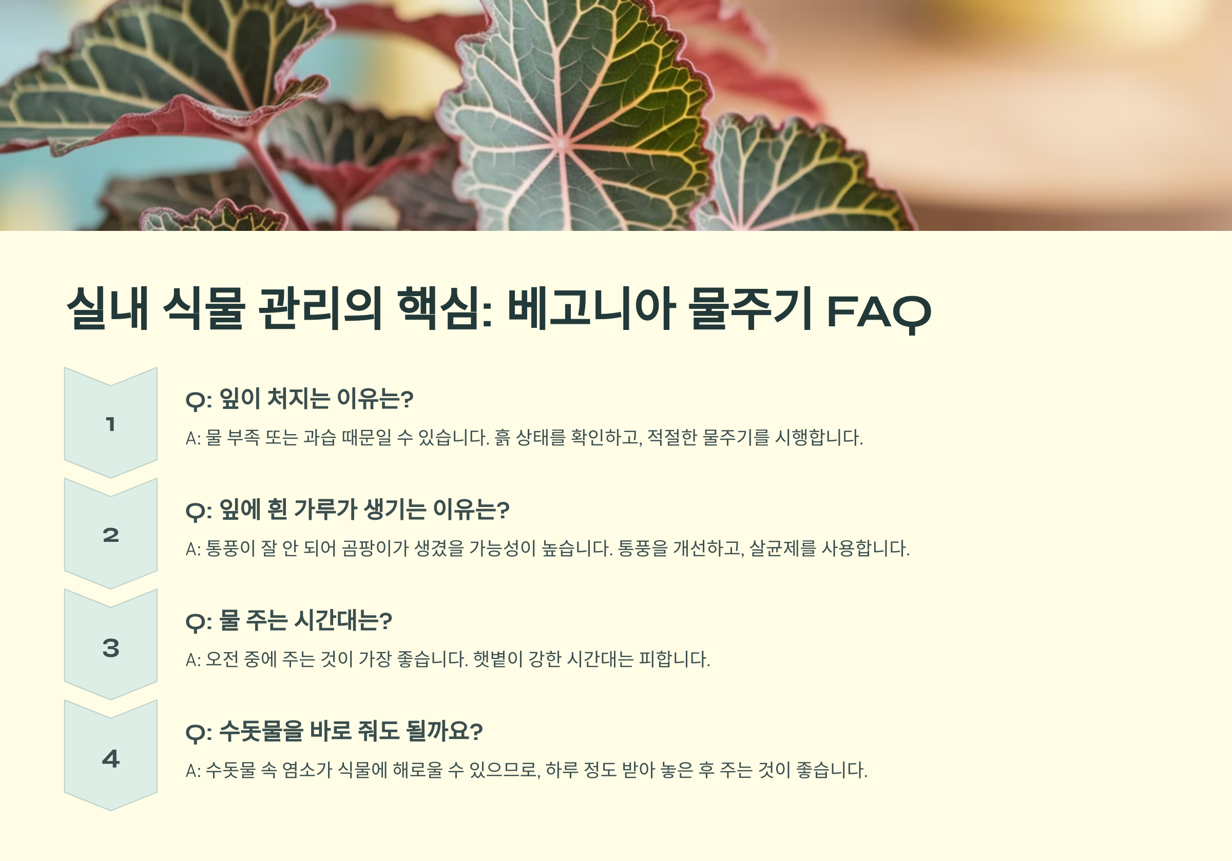 마지막으로, 베고니아 물주기에 대한 자주 묻는 질문(FAQ)을 정리해볼게요! 🧐