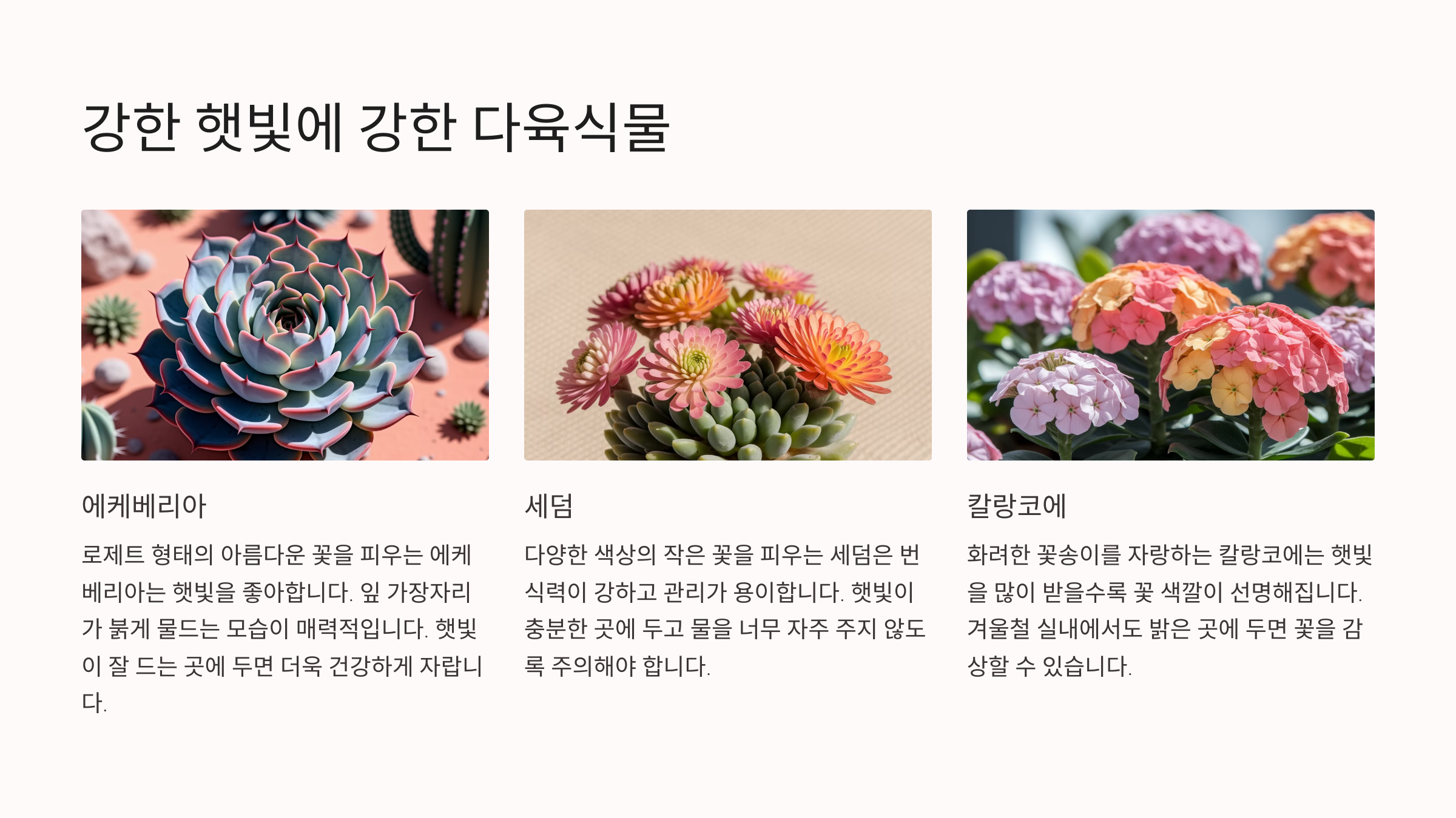 다음은 **강한 햇빛에도 잘 버티는 다육식물**을 알아볼까요? 🌞