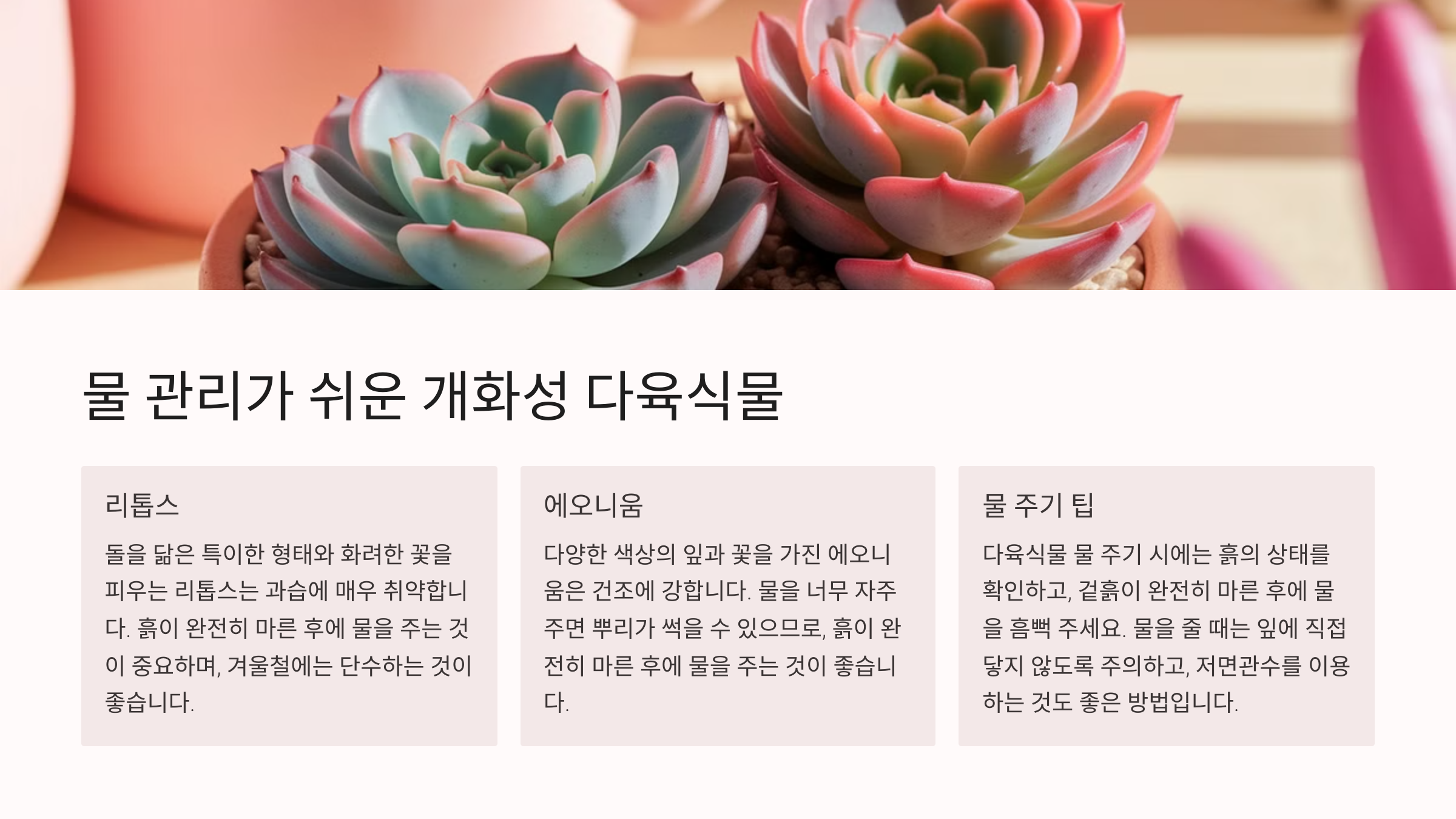 다음은 **물 관리가 쉬운 개화성 다육식물**을 알아볼까요? 💧