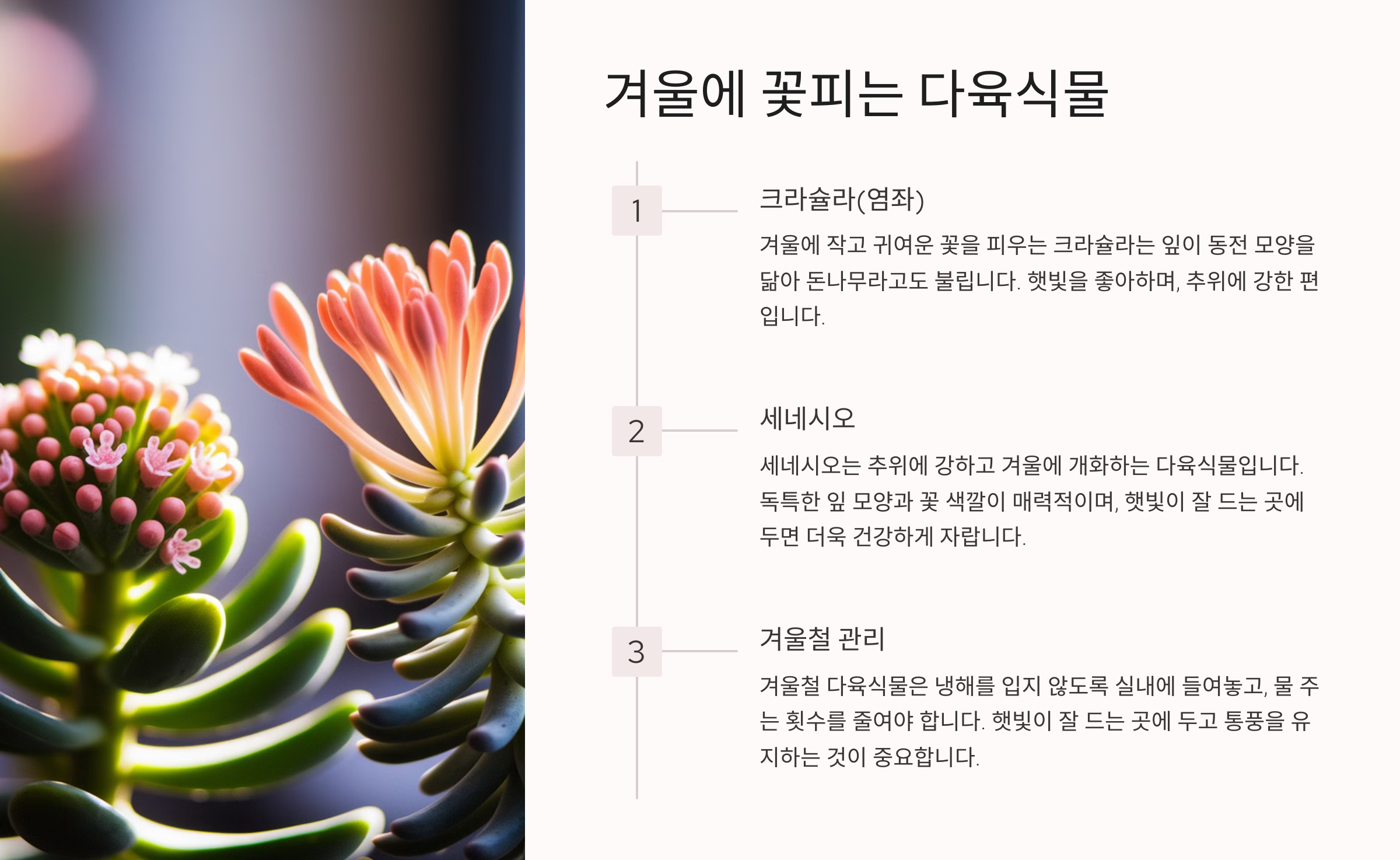 다음은 **겨울에도 꽃을 볼 수 있는 다육식물**을 알아볼까요? ❄️